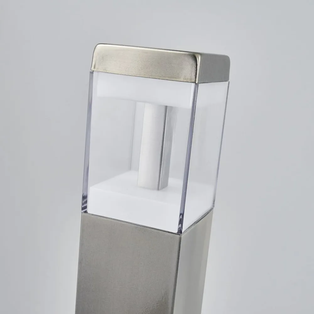 LED-gatelampe Baily med rustfritt stålhus i kantet form