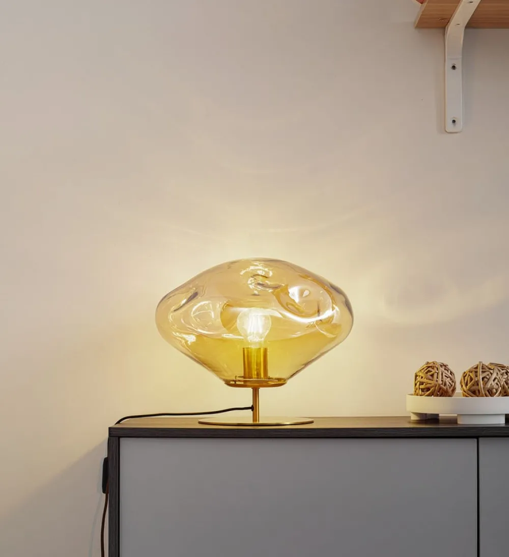Lindby bordlampe Lelia, ravfarget, glass, metall, Ø 35 cm