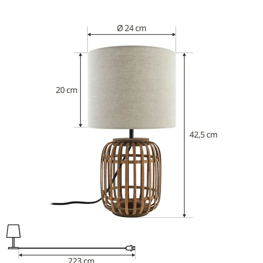Lindby bordlampe Marzanna, grå, bambus, 42,5 cm, E27| Bordlamper