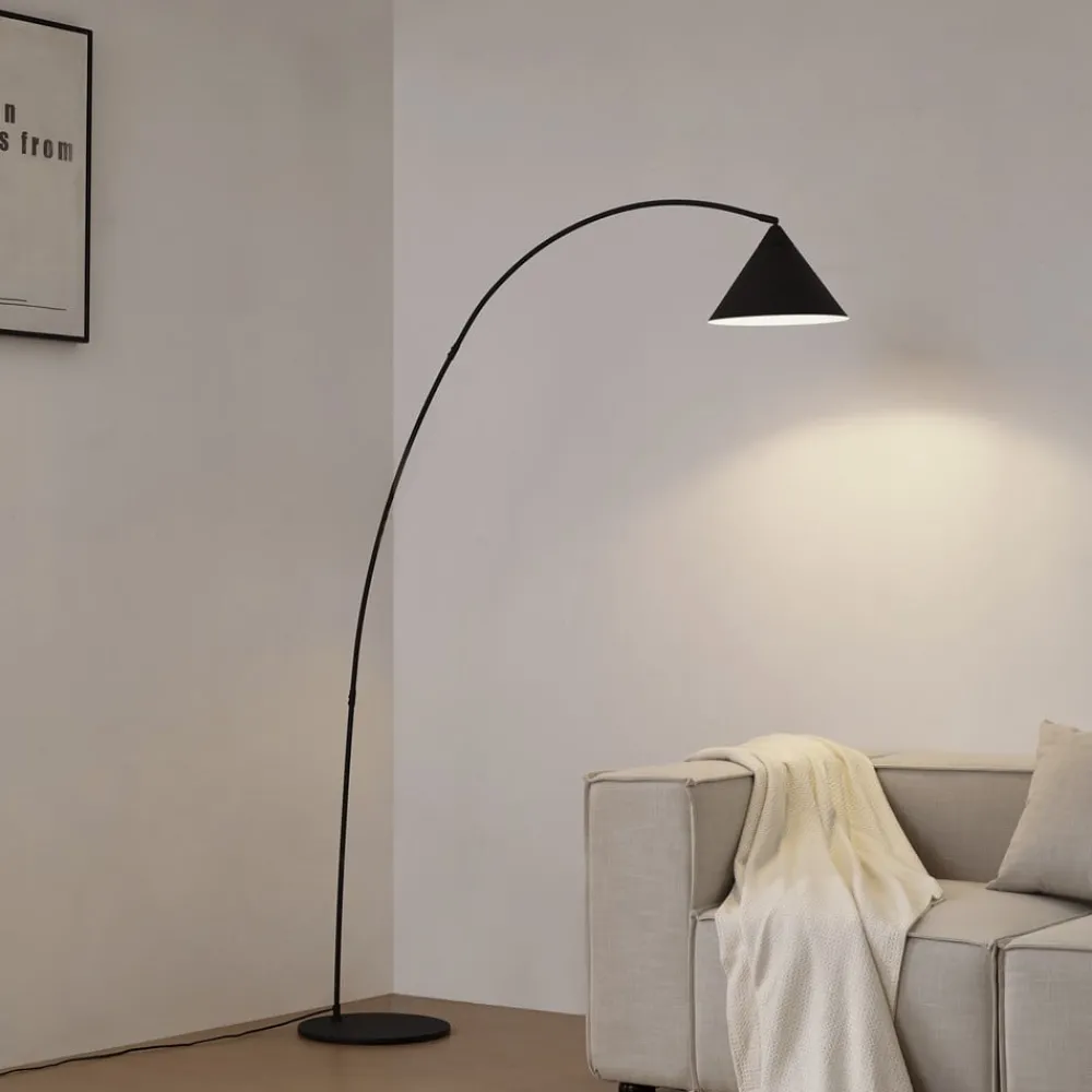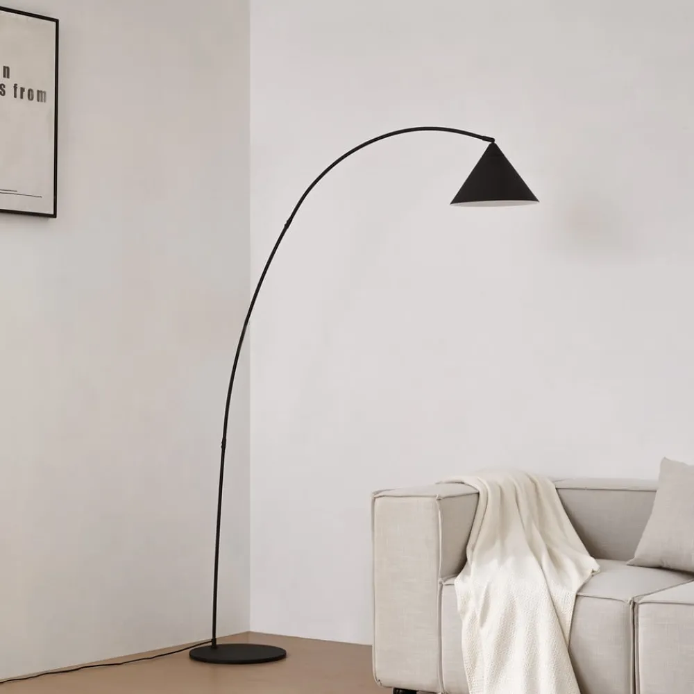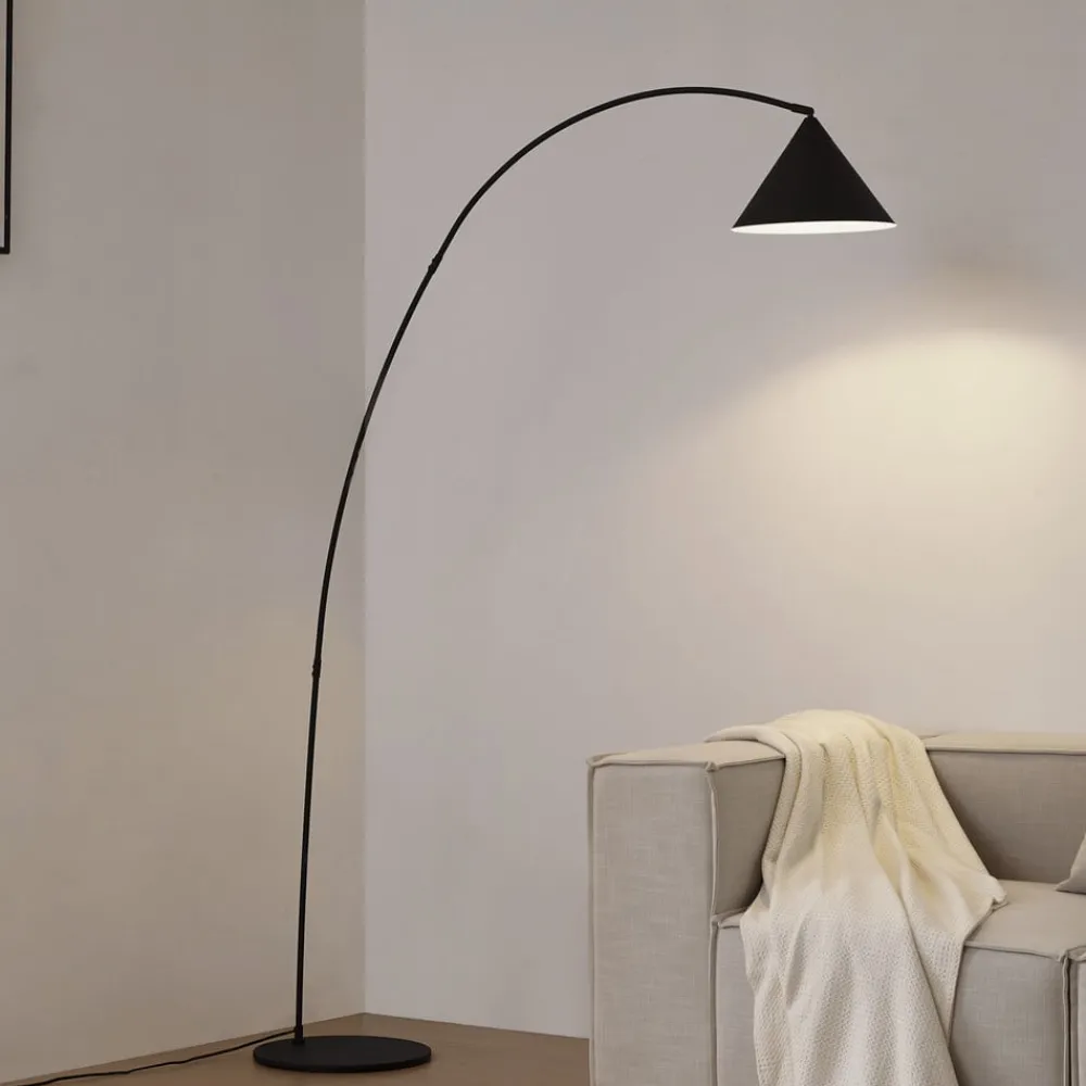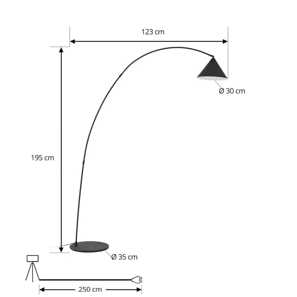 Lindby gulvlampe Triangolo i klassisk svart kombinerer moderne design med praktisk fleksibilitet. Den er laget av høykvalitets metall og passer perfekt inn i moderne hjem og tilbyr en stilig belysningsløsning. Den diskrete fargekontrasten mellom svart og hvit på innsiden av den kjegleformede skjermen skaper et behagelig lys som stråler nedover.