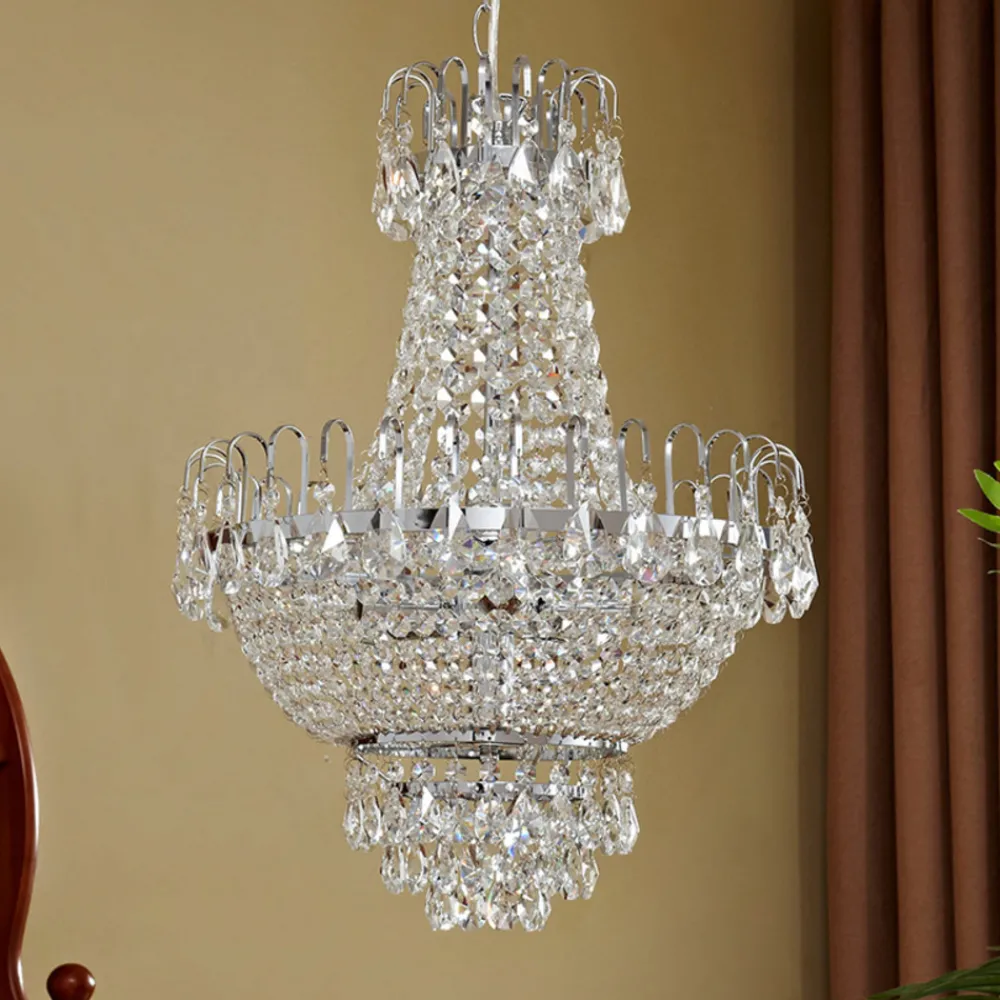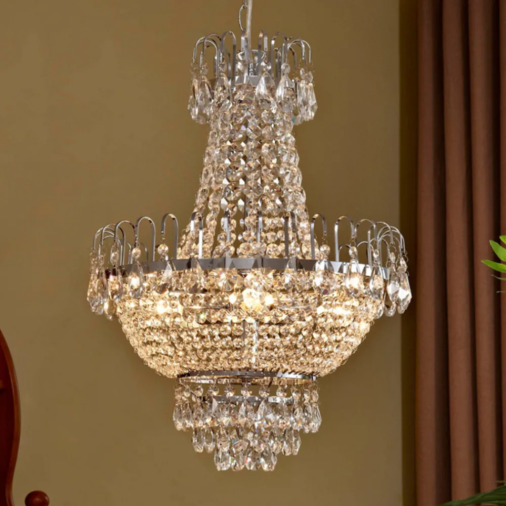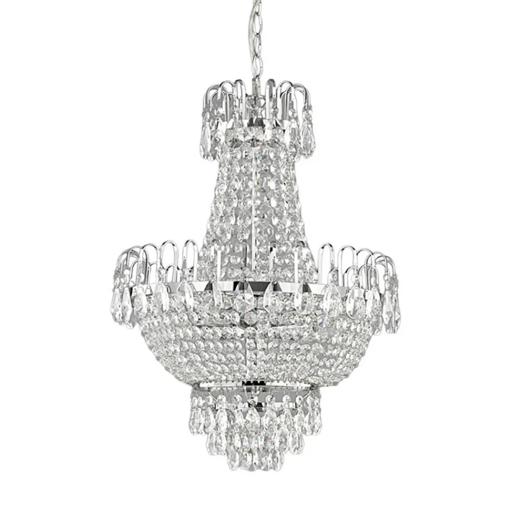 Lindby Casparia lysekrone, kromfarget, krystall, E14