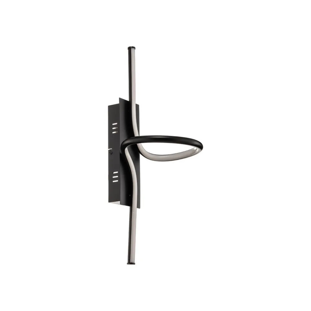 Sort Divola LED-vegglampe med tre-trinns dimfunksjon via veggbryter, buet lyselement med et usedvanlig moderne utseende
