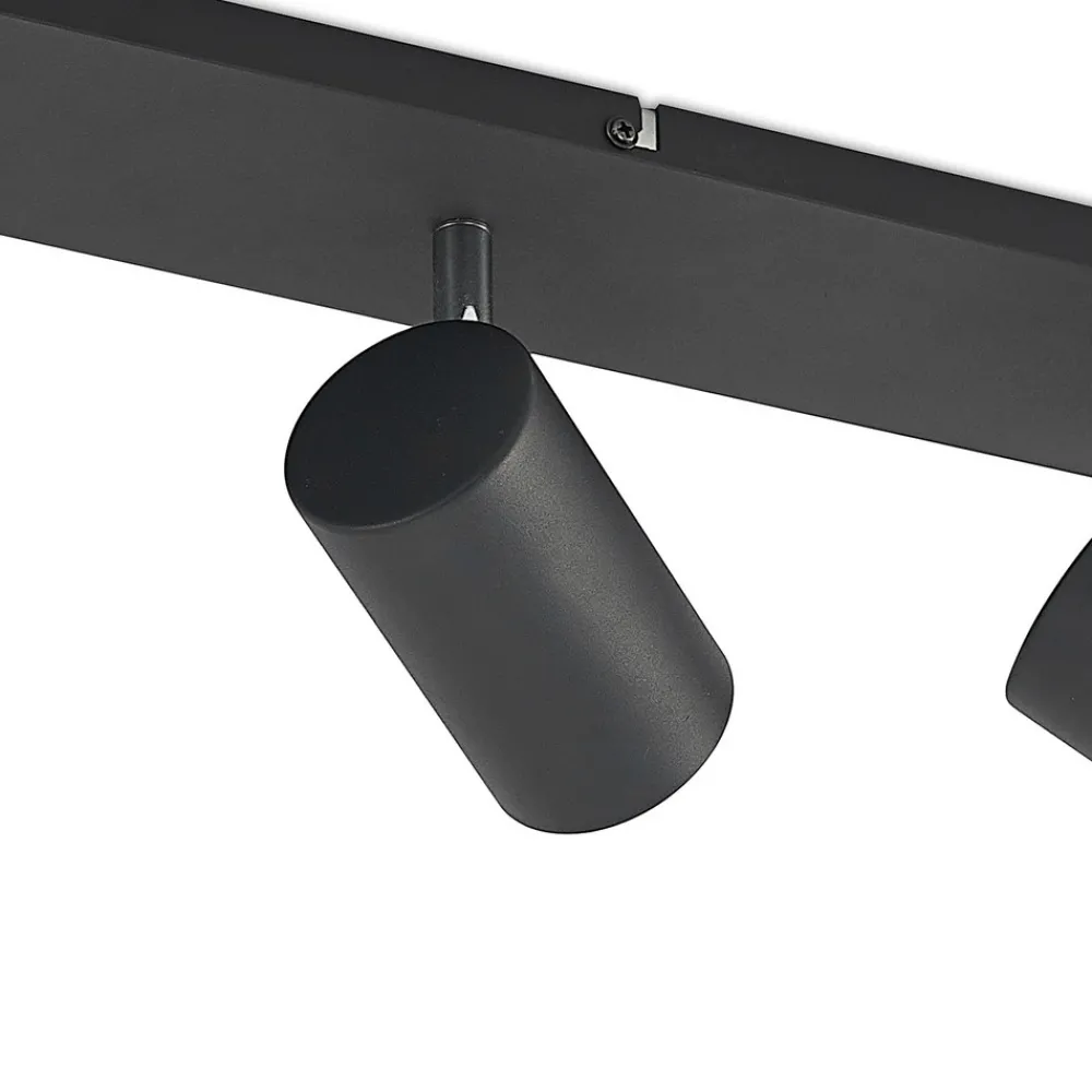 Joffrey downlight i stål og aluminium med fire lampeskjermer Denne spotlighten gir rommene dine en spesielt koselig atmosfære. Joffrey-modellen lar deg justere lysstyrken etter dine egne preferanser ved hjelp av en ekstern dimmer, er perfekt for spisestuen, stuen eller gangen og er tilpasset for bruk med pærer med GU10-sokkel. Armaturens moderne design er imponerende i svart. Den kombinerer alle kvalitetene og spesialfunksjonene til varemerket Lindby. Med Joffrey-armaturen får ethvert hjem en attraktiv belysning.