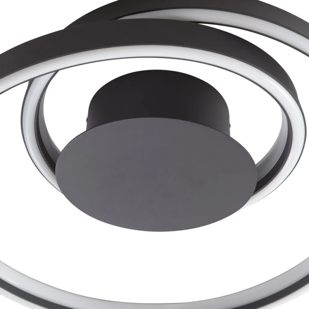 Sort LED-taklampe Erlinik med buet form og trinndim funksjon, ideell for moderne rom