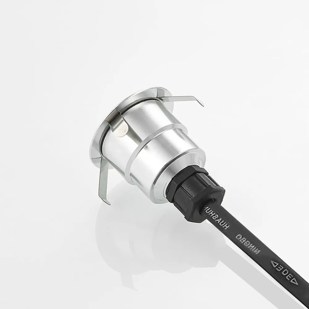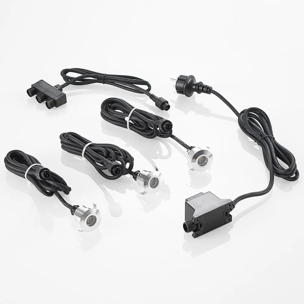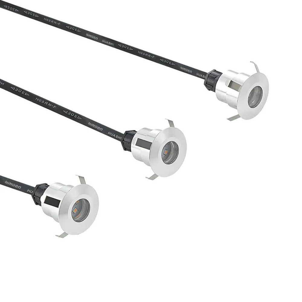 Her leveres tre kompakte innfelte gulvlamper i et praktisk sett, som takket være den høye kapslingsgrad er godt beskyttet mot fukt og smuss, slik at bruk utendørs er mulig uten å nøle. Armaturhuset består av aluminium i tidløs form og rund form. Strålevinkelen til lysdiodene er 60 grader.