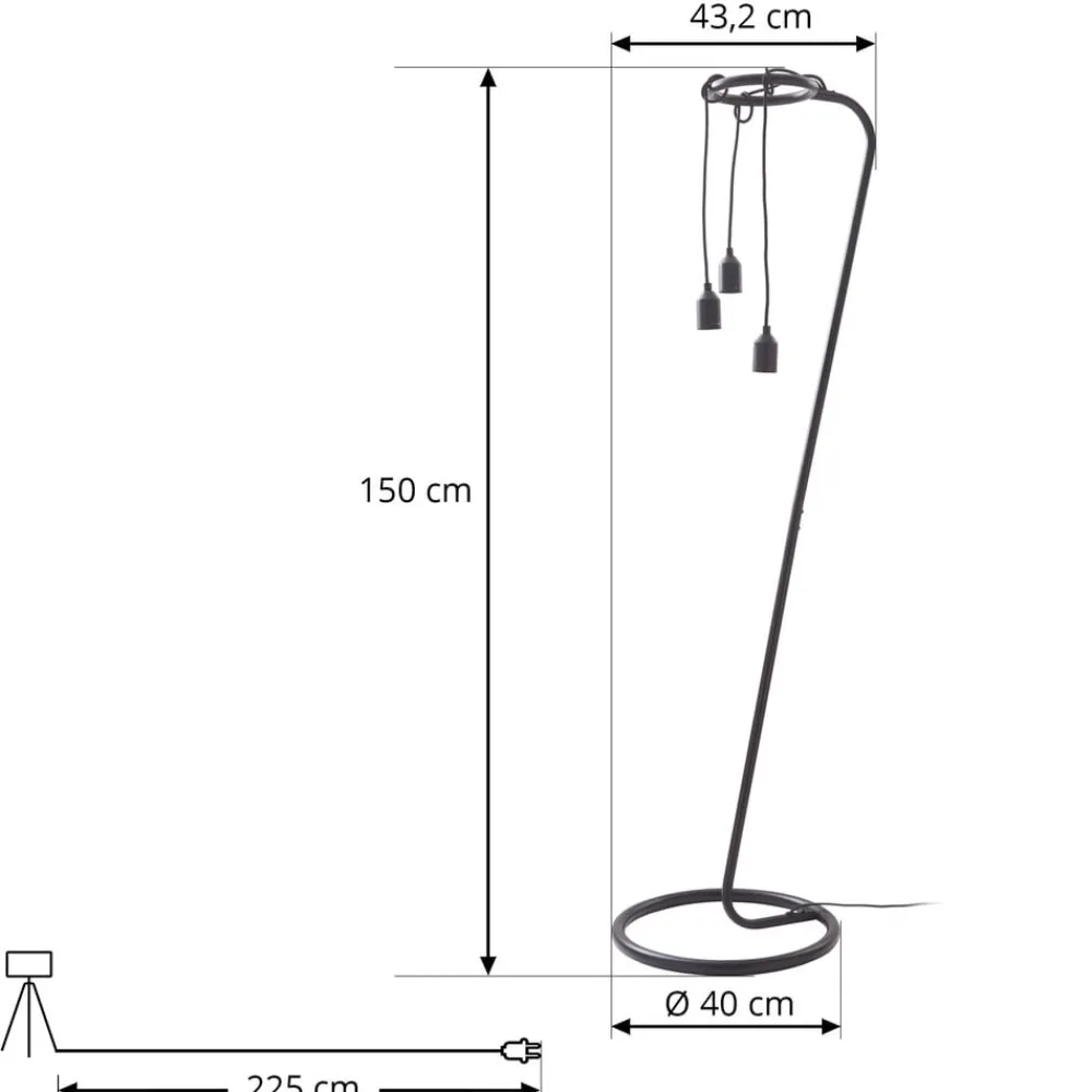 Elira 3 lyskilder gulvlampe i svart metall med slank trådramme Med denne gulvlampen er du alltid med på trenden. Det enestående utseendet smelter diskret inn i ethvert rom og gir et koselig lys som skaper en god atmosfære. Gulvlampen kan enkelt slås av og på med en bryter og er laget av jern. Den passer perfekt inn i ethvert interiør og skaper en flott stil. Lampen har en E27-fatning. Den kombinerer alle kvalitetene og de spesielle funksjonene som kjennetegner varemerket Lindby. Gulvlampen er svart i fargen. Den vil gi deg mye glede og kan integreres harmonisk i mange innredningsstiler. Denne gulvlampen skaper en koselig atmosfære i hjemmet ditt.