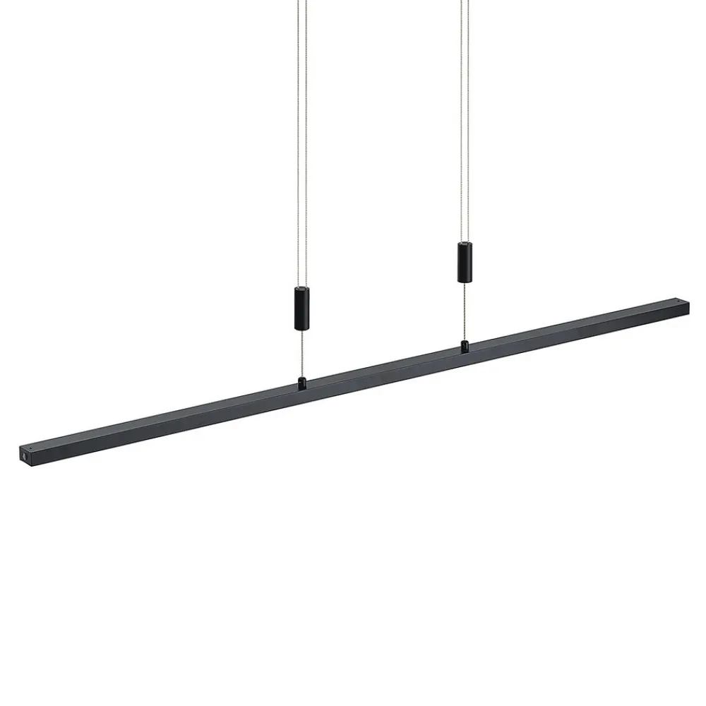 Arneja høydejusterbar LED-hengelampe med dimmer og regulerbar lysfarge (CCT) Arneja er en pendellampe med en langstrakt form som kan plasseres over et bord og alltid ser moderne og minimalistisk ut. Jojo-mekanismen gjør at høyden på opphengssystemet kan endres raskt og gjentatte ganger, noe som er en betydelig fordel i daglig bruk. I tillegg kan både lysfarge og lysstyrke justeres ved hjelp av en berøringsdimmer. Det finnes imidlertid ingen minnefunksjon, noe som betyr at pendellampen slår seg på igjen med 3000 K og full lysstyrke etter at den har vært slått av i lang tid.