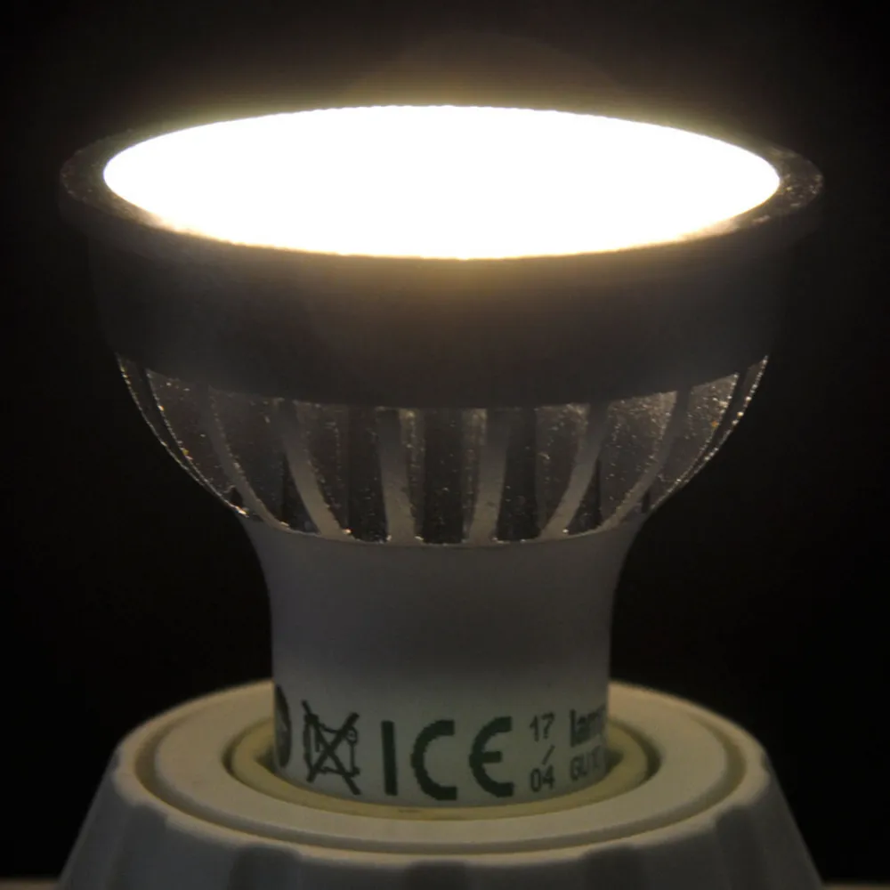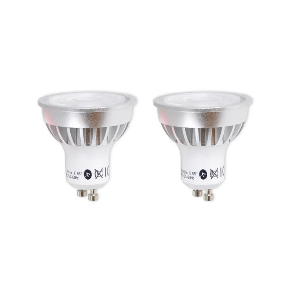 GU10 5 W LED-reflektor i et praktisk sett med 2 stk. Denne reflektoren imponerer med flott og tidløs design og er svært energibesparende takket være den nyeste LED-teknologien. Reflektoren er en pålitelig og langvarig lyskilde som avgir et varmt hvitt lys på 3 000 Kelvin i opptil 20 000 timer. Med et lavt wattforbruk på 5 watt kan denne LED-lampen erstatte konvensjonelle halogenreflektorer på opptil 45 watt. Takket være designen og en 55° spredningsvinkel egner reflektoren seg både til hjemmebruk og til belysning av butikklokaler, utstillingsvinduer, museer eller til aksentbelysning i hotell- og restaurantbransjen. Egenskaper: – har en effektfaktor på 0,5 – kan ikke dimmes – avgir et varmt hvitt lys i ca. 20 000 timer – inneholder ikke kvikksølv – reflektoren krever ingen oppvarmingsfase (1 sekund til 100 % lysstyrke) – vedlikehold av lampens lysstrøm ≥85 % ved 75 % av gjennomsnittlig levetid – leveres i et praktisk sett med 2 stk