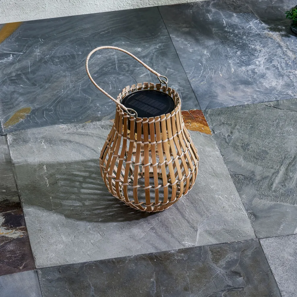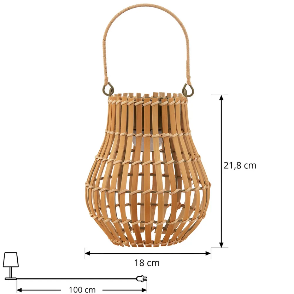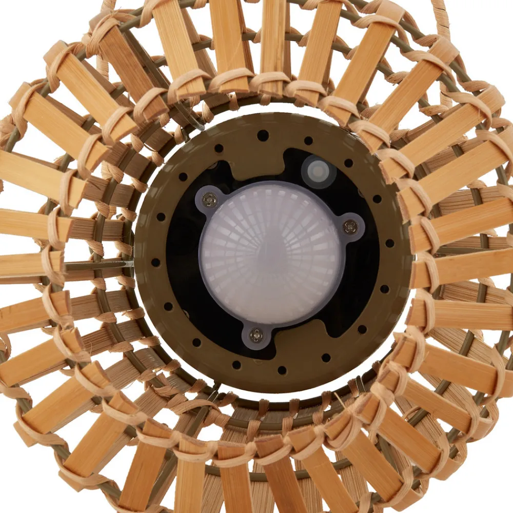 Amaria solcelle-LED-lys av bambus – et stilig tilskudd til uteplassen Solcelle-LED-lyset til uteplassen av bambus er et miljøvennlig og stilig alternativ for utendørsbelysning, siden det drives av et solcellepanel. Lampen er klassifisert i klasse III med IP44, noe som betyr at den er beskyttet mot vannsprut og derfor er egnet for utendørs bruk. Den medfølgende USB-C-kabelen gjør det raskt og enkelt å lade de integrerte batteriene. Dette lyset er et attraktivt alternativ for å lyse opp uteplassen eller hagen – inkl. 3,7 V Li-Ion-batteri – inkl. USB-C-kabel – batterilevetid 6 timer
