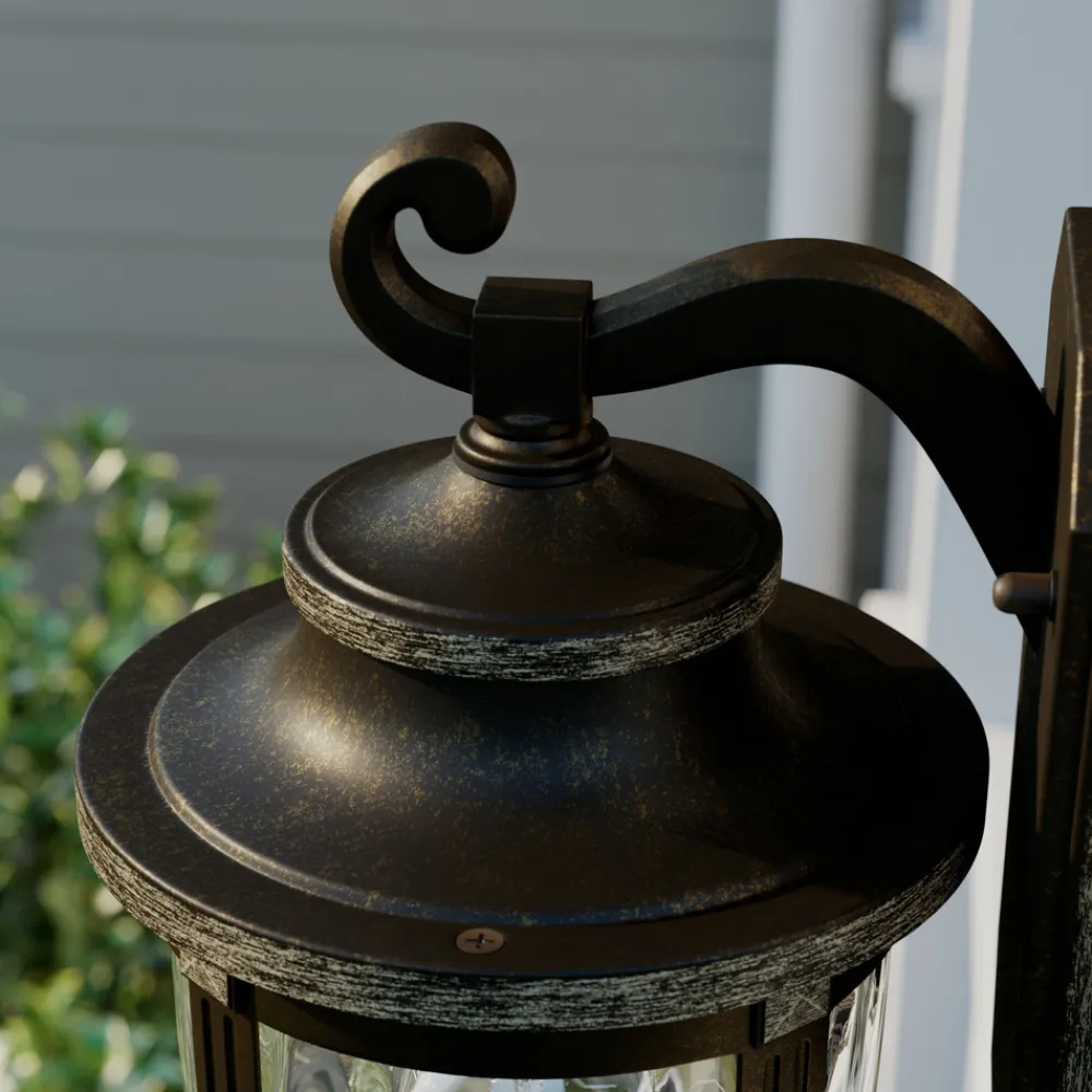 Utendørs LED-vegglampe Philody med antikkbrun metallramme og strukturglass