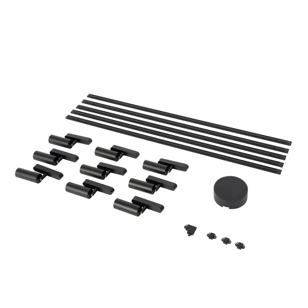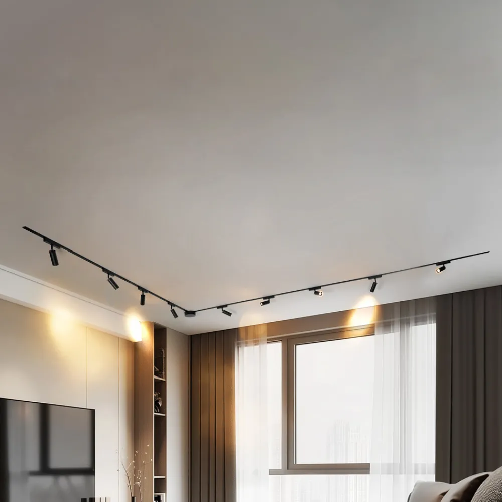 Skinnesystemet Lumaro er svart og består av jern, aluminium og plast. Det har et flatt og elegant design og passer perfekt i moderne oppholdsrom. I tillegg er det raskt og enkelt å installere, og med sitt lavspenningssystem er det energieffektivt, bærekraftig og har lang levetid.