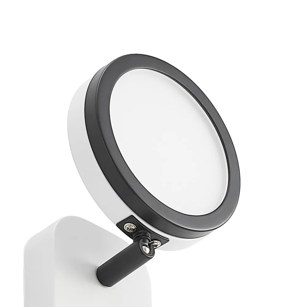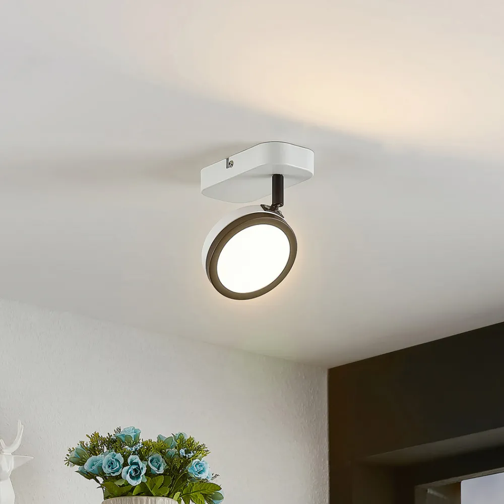 Vesim spotlight med fleksibel lyskilde Vesim er en tidløs lyskilde som kan festes både i taket og på veggen. Det slanke armaturhuset er laget av jern og har en hvit finish. Det runde armaturhodet har i tillegg en svart ring som gjør utseendet komplett. Spotlighten har GX53-sokkel og kan dreies og vippes etter behov for å tilpasse lysutslippet til dine behov.