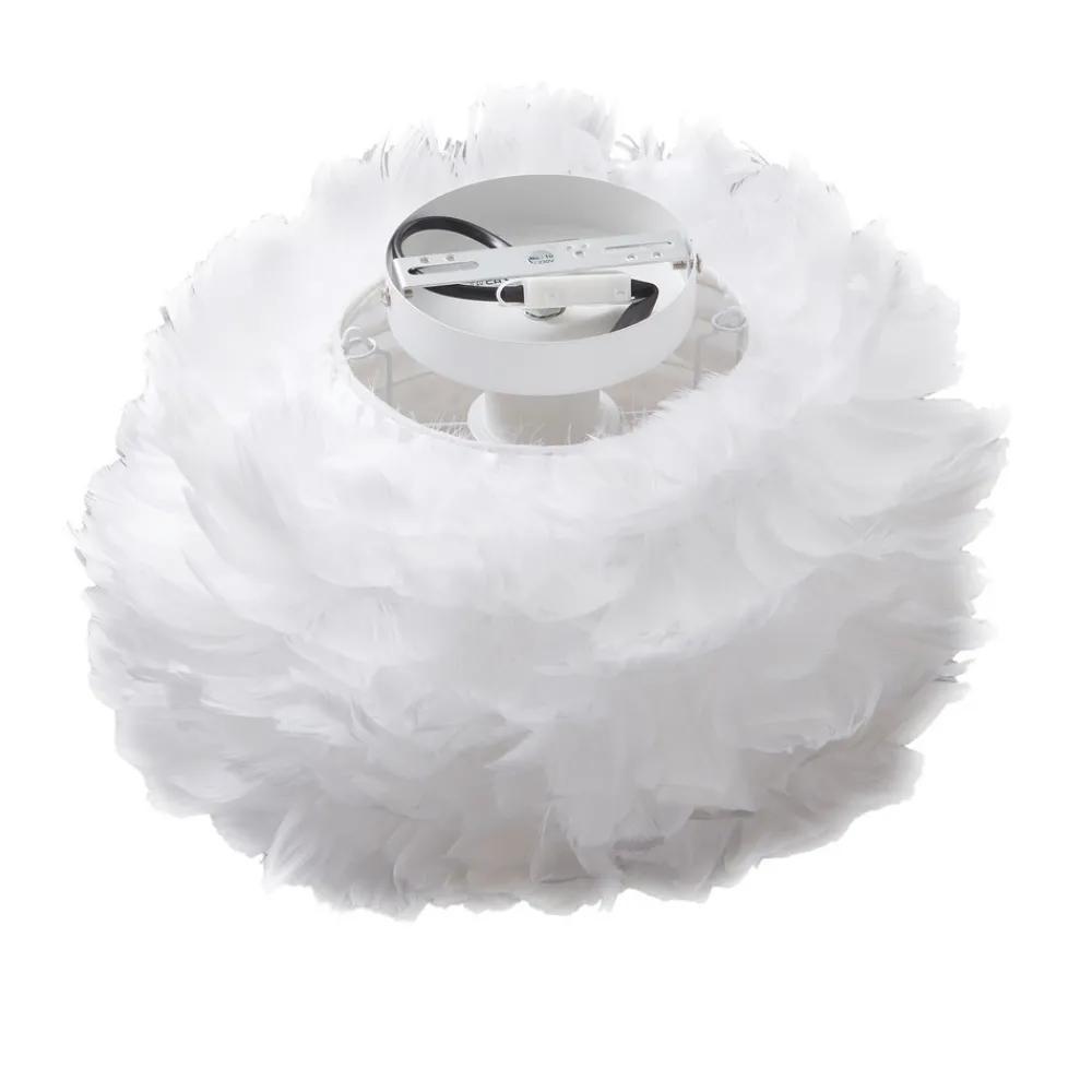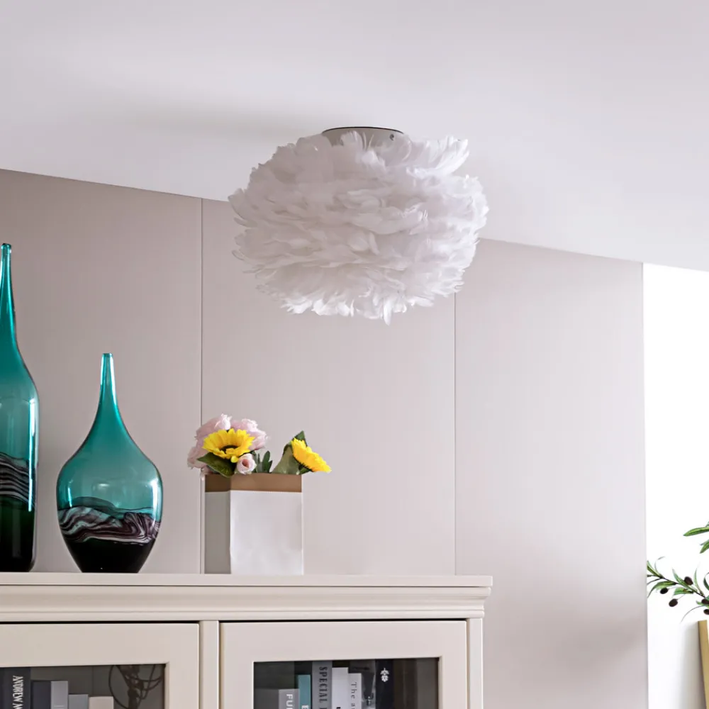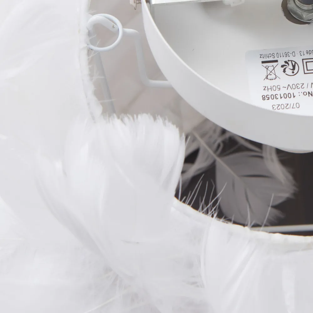 Heven taklampe med fjær – et spesielt dekorativt innslag i interiøret Denne taklampen vil garantert gjøre en god figur i innredningen din, siden lampeskjermen er dekorert med fjær, noe som gir den et slående utseende. Du kan justere lysstyrken etter eget humør ved hjelp av en ekstern dimmer (medfølger ikke). Taklampen imponerer med sin flotte design, som passer godt til alle innredningsstiler. Taklampen er det perfekte elementet for å gi rommet ditt en vakker atmosfære. Taklampen i plast imponerer med sin Lindby-merkevarekvalitet og står derfor for en unik boligopplevelse og flott design. Den har en E27-sokkel. Denne taklampen utfyller det generelle utseendet på interiøret ditt. Lampen gir ikke bare et vakkert lys, men har også en dekorativ funksjon.