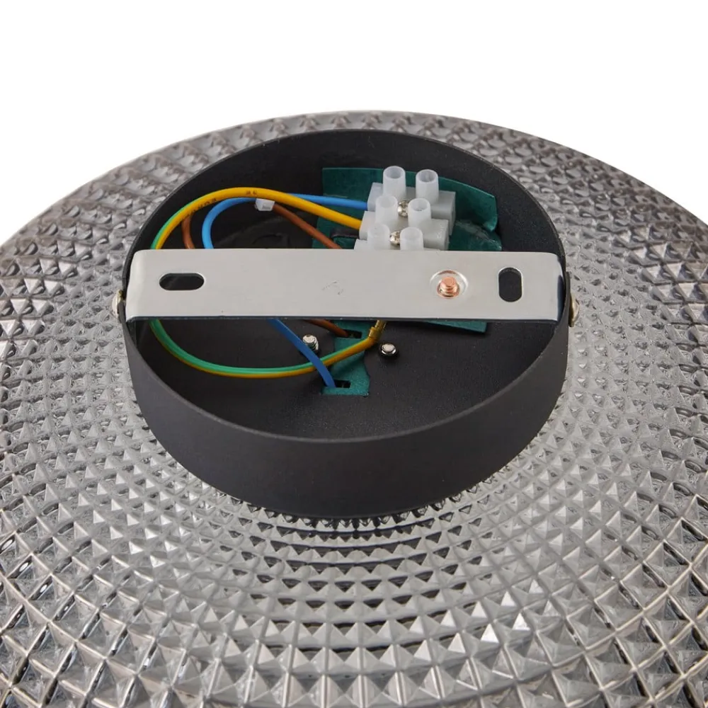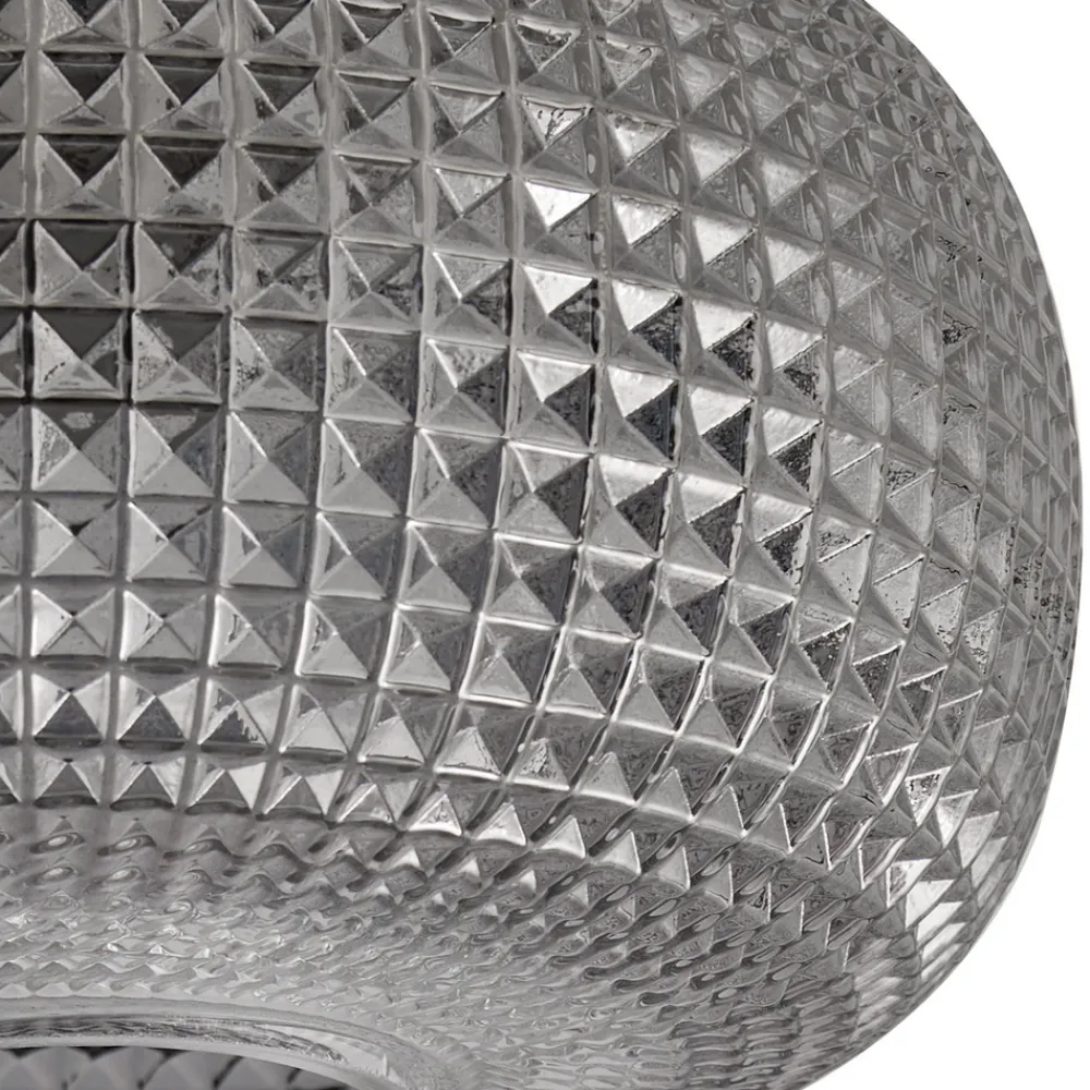 Rund Hildur taklampe med glassskjerm i røykgrå Hildur taklampe kombinerer både moderne og vintageelementer i sin design, noe som gjør den til et allsidig belysningselement for ulike oppholdsrom. Det røykfargede glasset gir en myk lysfordeling, mens den svarte baldakinen skaper en slående kontrast og avrunder helhetsinntrykket. Selv om det ikke følger med en dimmer med denne modellen, kan lysstyrken justeres etter individuelle behov ved å koble den til en ekstern dimmer for å oppnå ønsket omgivelsesbelysning (vær oppmerksom på at den eksterne dimmeren må kjøpes separat).