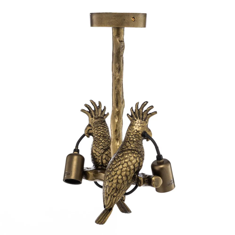 Lindby taklampe Nirvathia, papegøyer, messingfarget