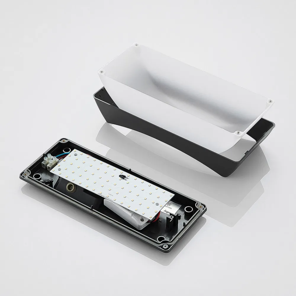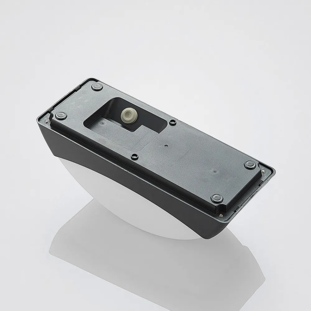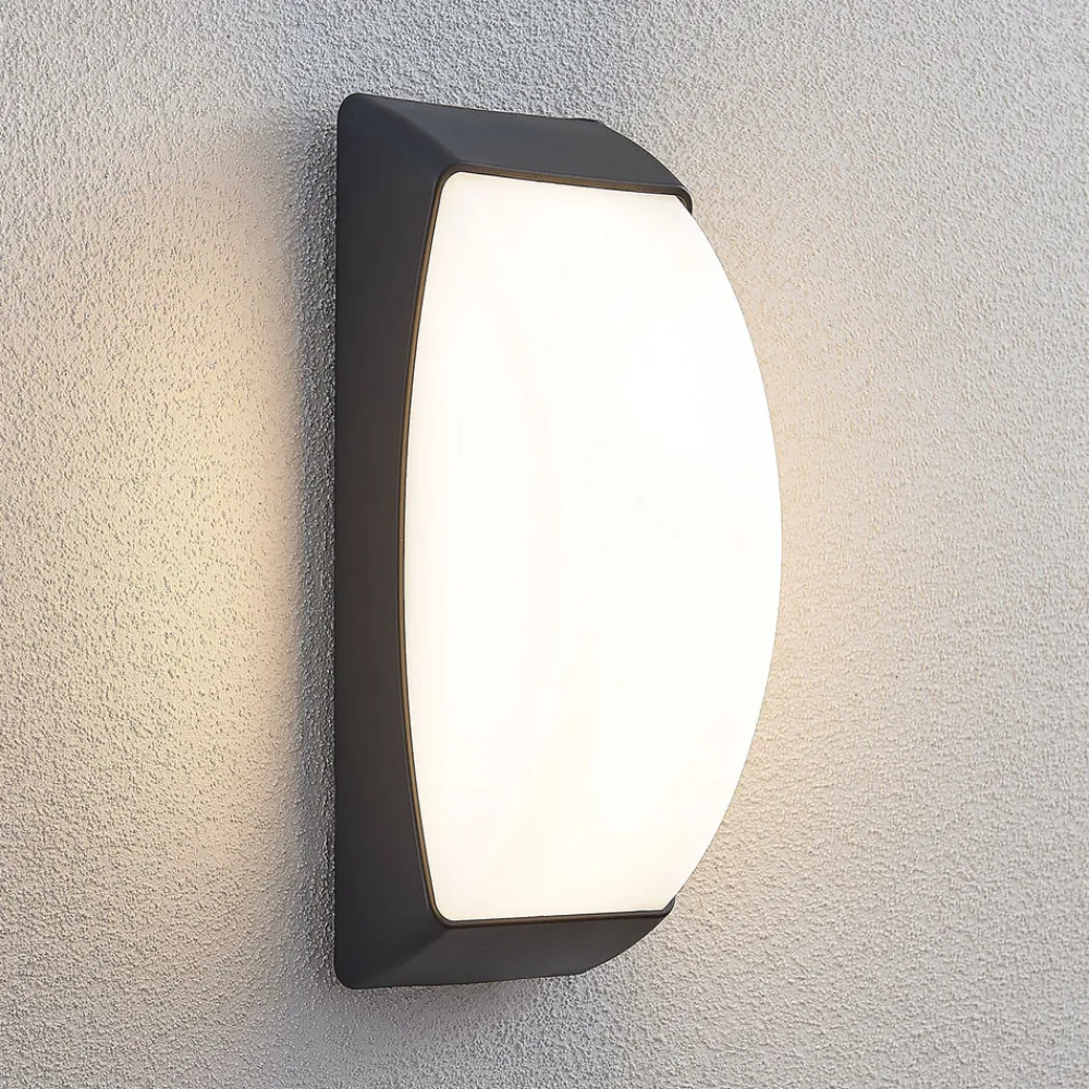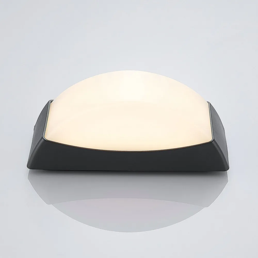 Alexey passer til all moderne arkitektur og gir et jevnt og mildt lys til omgivelsene rundt. Både skjermen og lampekroppen består av en robust, støtsikker plast og er ikke bare beskyttet mot vær og vind (kapslingsgrad IP65), men kan også brukes nær sjøen, ettersom denne lampen også er saltvannsresistent. LEDen har en høy energiklasse, som betyr mye lys og lite strøm.