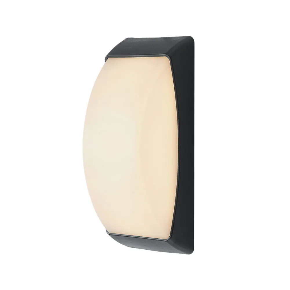 Mørkegrå utendørs LED-vegglampe Alexey med buet skjerm, saltvannsresistent, IP65