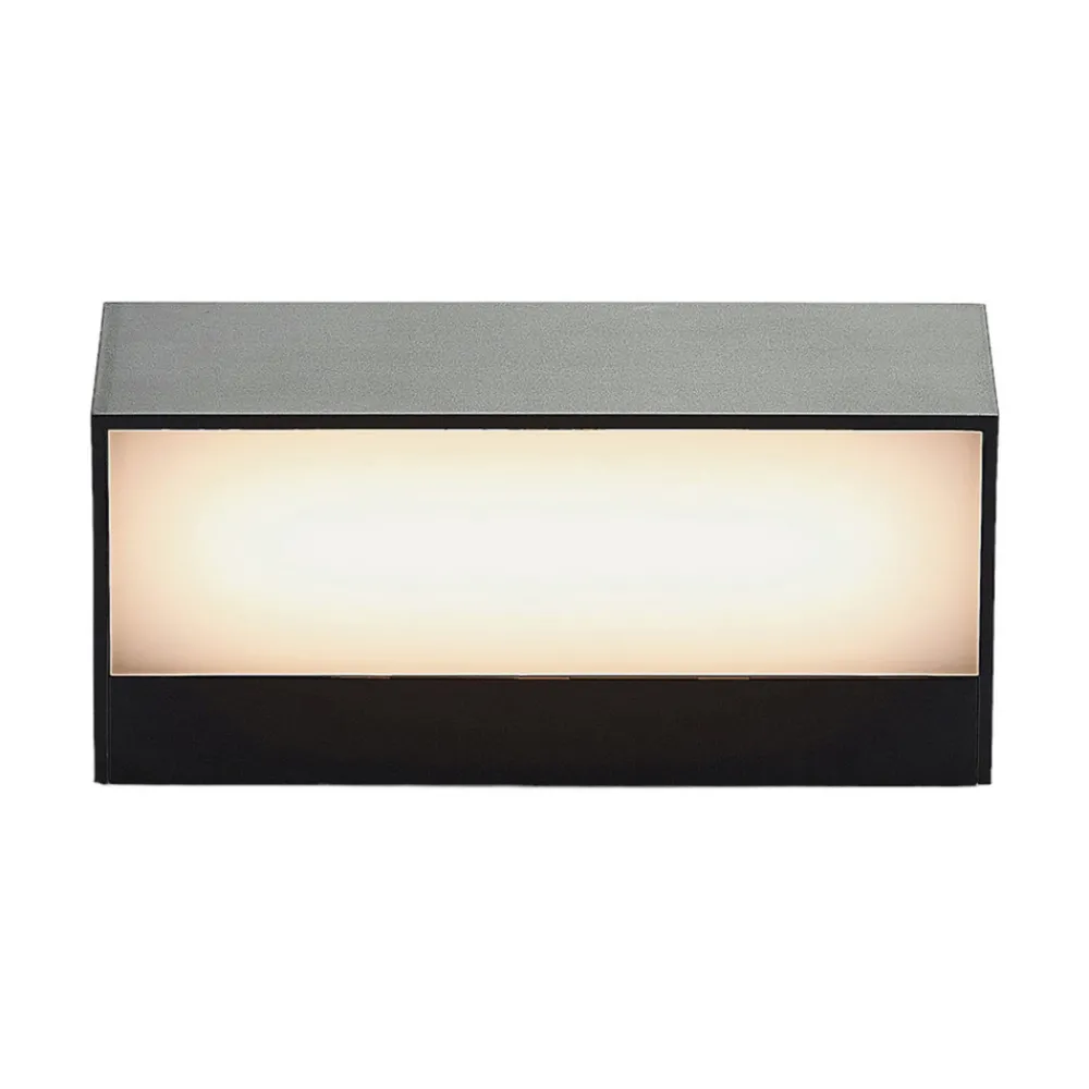Mørkegrå utendørs LED-vegglampe Nienke, saltvannsresistent Denne utendørs vegglampen imponerer med sitt enkle formspråk, da den er helt kantet i formen. Plasthuset er robust og har en mørkegrå finish (RAL 7024), og armaturen er dessuten sjøvannsbestandig slik at den tåler det tøffe klimaet til sjøs. Lyset sendes både nedover og oppover og er derfor både direkte og indirekte. Takket være LED-teknologien er den utendørs vegglampen Nienke svært energieffektiv.