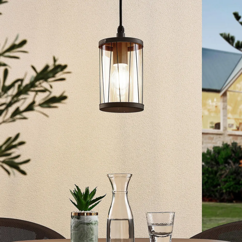 Yonan er solid og godt forseglet, så det er ikke noe problem å bruke pendellampen ute. Du kan f.eks. bruke lampen på tildekte terrasser og balkonger. Siden E27-pæren er godt synlig, bør den passe til det helhetlige designet, slik som en glødelampe. Dette gjelder også for LED-lamper med filamentteknologi eller i rustikk stil. Sidestripene, som er rettformede, men stilt på skrå, er plassert rundt hele skjermen og dekorerer lampeskjermen på en svært interessant og stilig måte. For ekstra individualitet ved utendørsbelysningen!