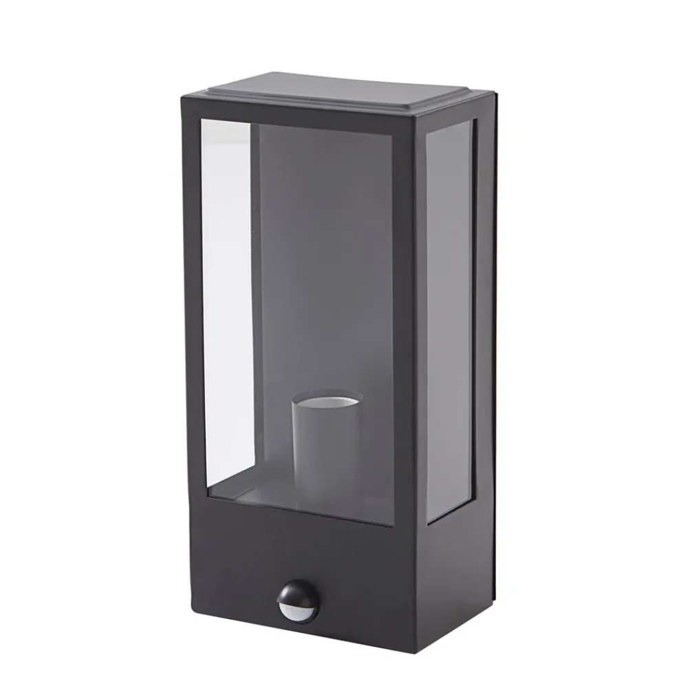 Dekorativ utendørs vegglampe Ilana med bevegelsessensor Ilana utendørs vegglampe er det ideelle valget for en koselig utendørs belysningsopplevelse. Vegglampen har en vakker design og integreres vakkert i ethvert uteområde. Med kapslingsgrad IP44 er den beskyttet mot inntrengning av faste fremmedlegemer med en diameter større enn 1 mm og vannsprut. Ilana er laget av rustfritt stål og glass. Den gjennomsiktige lampeskjermen avslører lyset på pæren inni, noe som gjør den ideell til bruk som en dekorativ lyskilde. Den har også en sensor som registrerer bevegelse i omgivelsene og deretter slår lyset på automatisk. Den utendørs vegglampen gir et flott utseende og tilfører atmosfære og sikkerhet til ethvert område takket være den integrerte bevegelsessensoren.