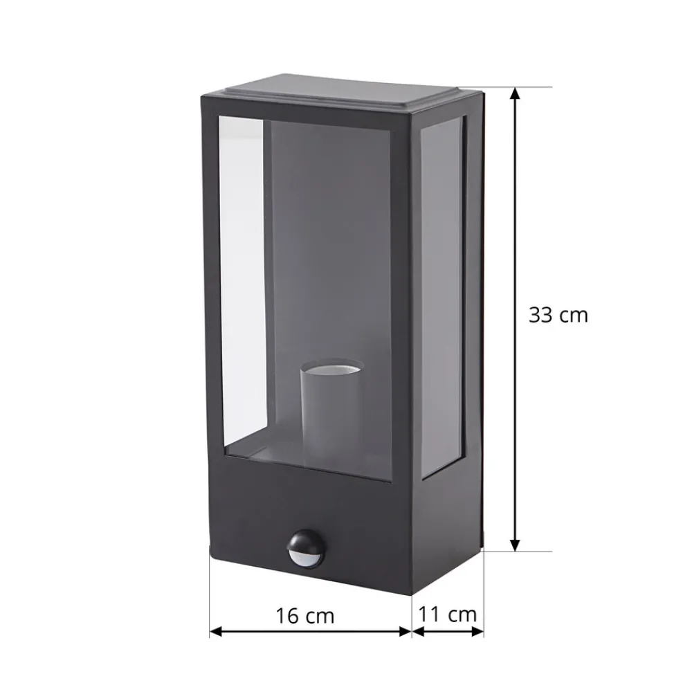 Lindby utendørs vegglampe Ilana, svart, sensor, IP44, E27 Outlet