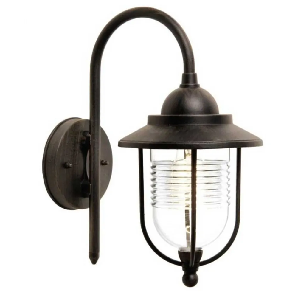 Med sin rustfargede overflate er Meret utendørs vegglampe ideell for landlig stil Alle som har en forkjærlighet for landlig stil, vil elske denne utendørs vegglampen. Med sin rustfargede overflate har den på den ene siden et antikt utseende, men passer på den andre siden også inn i enhver form for landlig stil. Muligheten til å bruke sparepære bidrar også til å skåne miljøet. Det faktum at den nedre delen av skjermen er laget av klart polykarbonat, gjør Meret utendørs vegglampe til en spesielt robust utelampe som er godt beskyttet mot brudd.