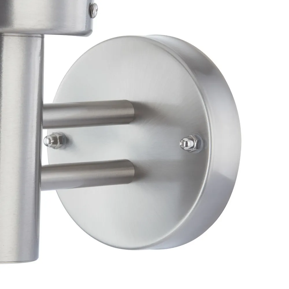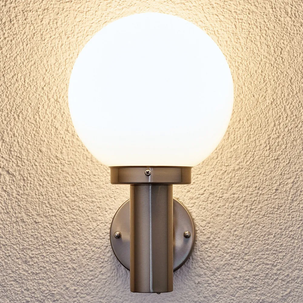 Nada har en opalvit skjerm i sfærisk glass og et stativ i rustfritt stål. Den består av et rundt veggfeste og to smale stag som peker mot den fremre delen av stativet. Der munner stativet i rustfritt stål ut i glasskulen som holder E27-pæren. Den opalhvite overflaten gir en spesielt myk lysfordeling, og utendørs vegglampen passer ikke bare til et moderne miljø, den ser også veldig stilig ut når den kombineres med et mer klassisk miljø.