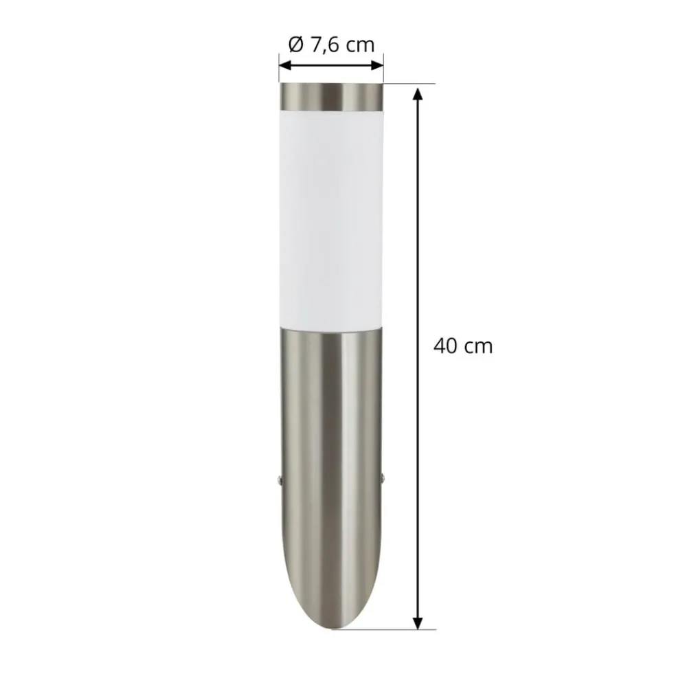 Denne vegglampen lyser opp utendørsområdet ditt og er også et visuelt tilskudd takket være sitt tiltalende helhetsinntrykk. Dimmerfunksjonen gjør det mulig å regulere lysstyrken perfekt ved hjelp av en ekstern dimmer (ikke inkludert). Med sitt vakre design utvider utendørs vegglampe lyskonseptet i alle områder på en stilig måte. Takket være kapslingsgrad IP44 er den beskyttet mot inntrengning av faste fremmedlegemer med en diameter større enn 1 mm og sprutvann. Lampen skaper en stemningsfull atmosfære med en lyskilde. Den har en E27-fatning. Utendørs vegglampe er grå. Vegglampe i moderne design imponerer med kvaliteten på det brukte stålet. Den skaper en behagelig atmosfære og setter ethvert uteområde i et vakkert lys. Lampen vil glede deg og kan integreres i forskjellige dekorasjonsstiler. Denne utelampen sender ut et innbydende, behagelig lys og skaper dermed en utmerket atmosfære, for eksempel i hagen, på terrassen eller på balkongen.