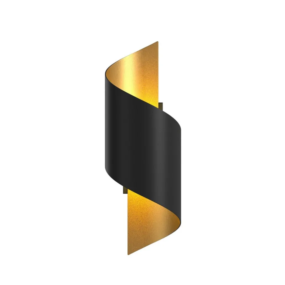 Formfullendt vegglampe Desirio med vridd metallskjerm i svart og gull, 3-pakning Desirio er et svært attraktivt belysn…