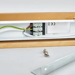 En koselig effekt og en elegant finish: Emina vegglampe i gips Med Emina, en vegglampe i gips, sendes lyset oppover og nedover, noe som gjør den spesielt hjemmekoselig. Vegglampens grunnform er kantet, og derfor kan Emina også kombineres godt med moderne møbler. Den gylne overflaten med sine nyanser skaper utvilsomt en veldig sublim effekt, slik at Emina kan beskrives som stilfull og elegant.