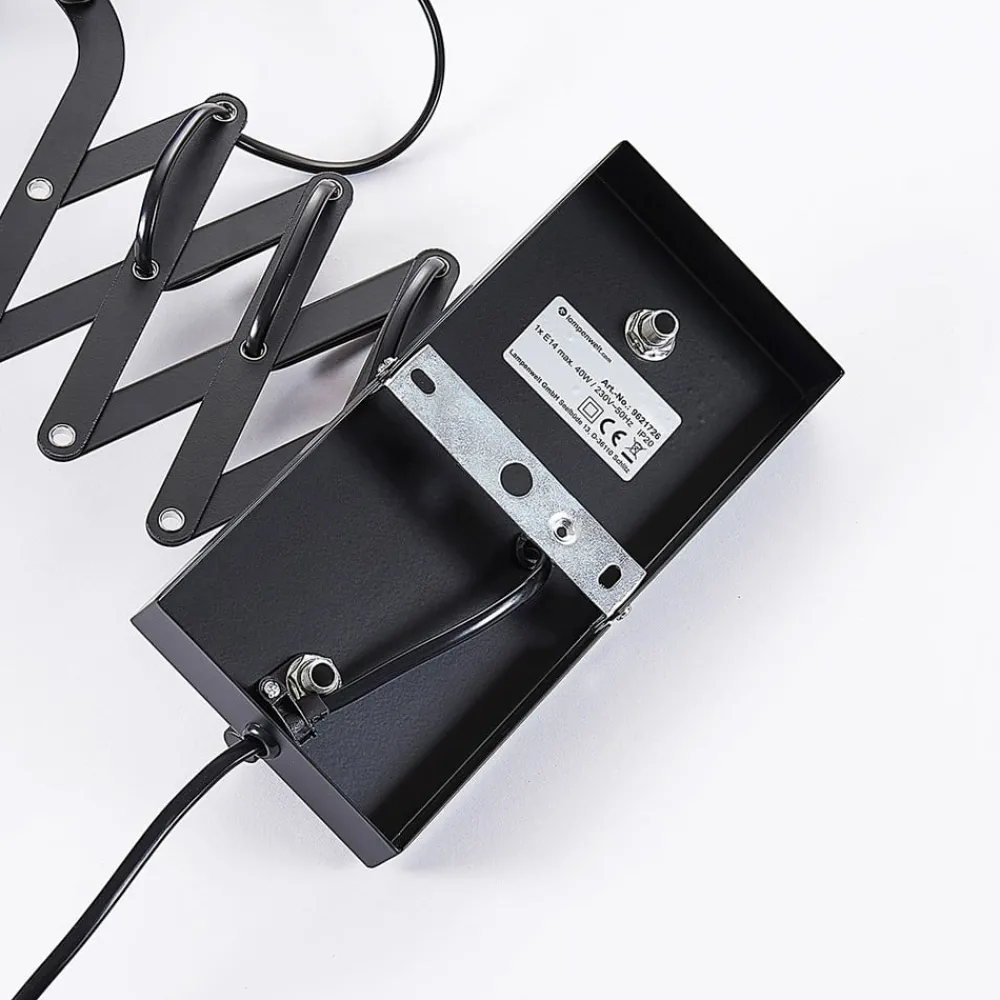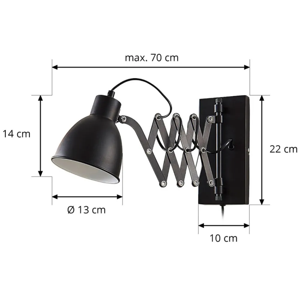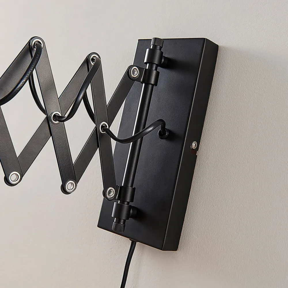 Lindby vegglampe Merle, svart, 60 cm, leselampe, uttrekkbar| Vegglamper