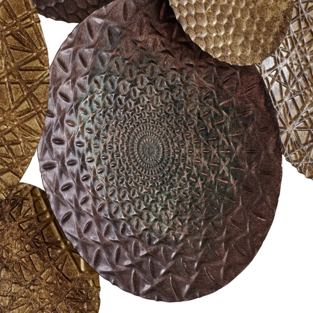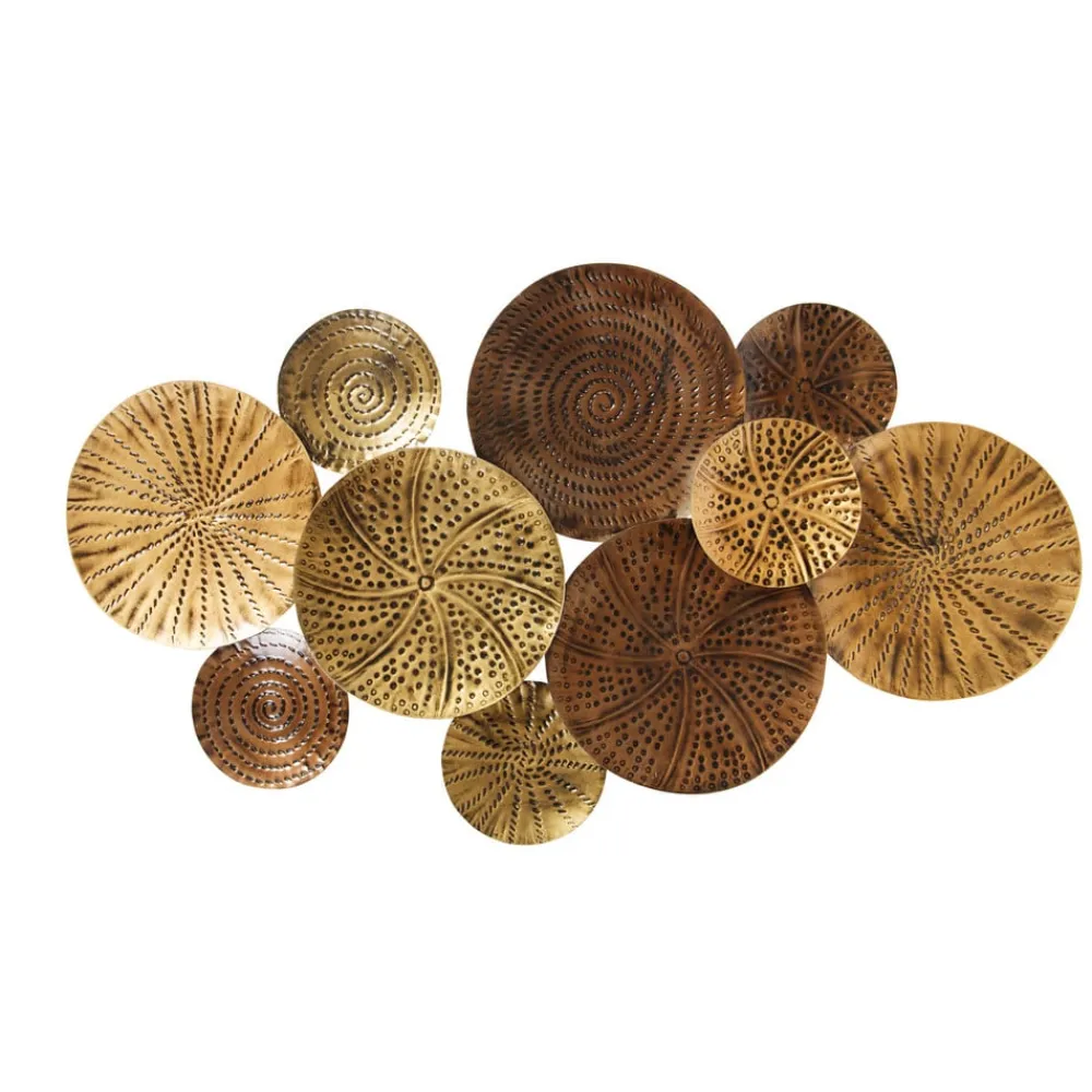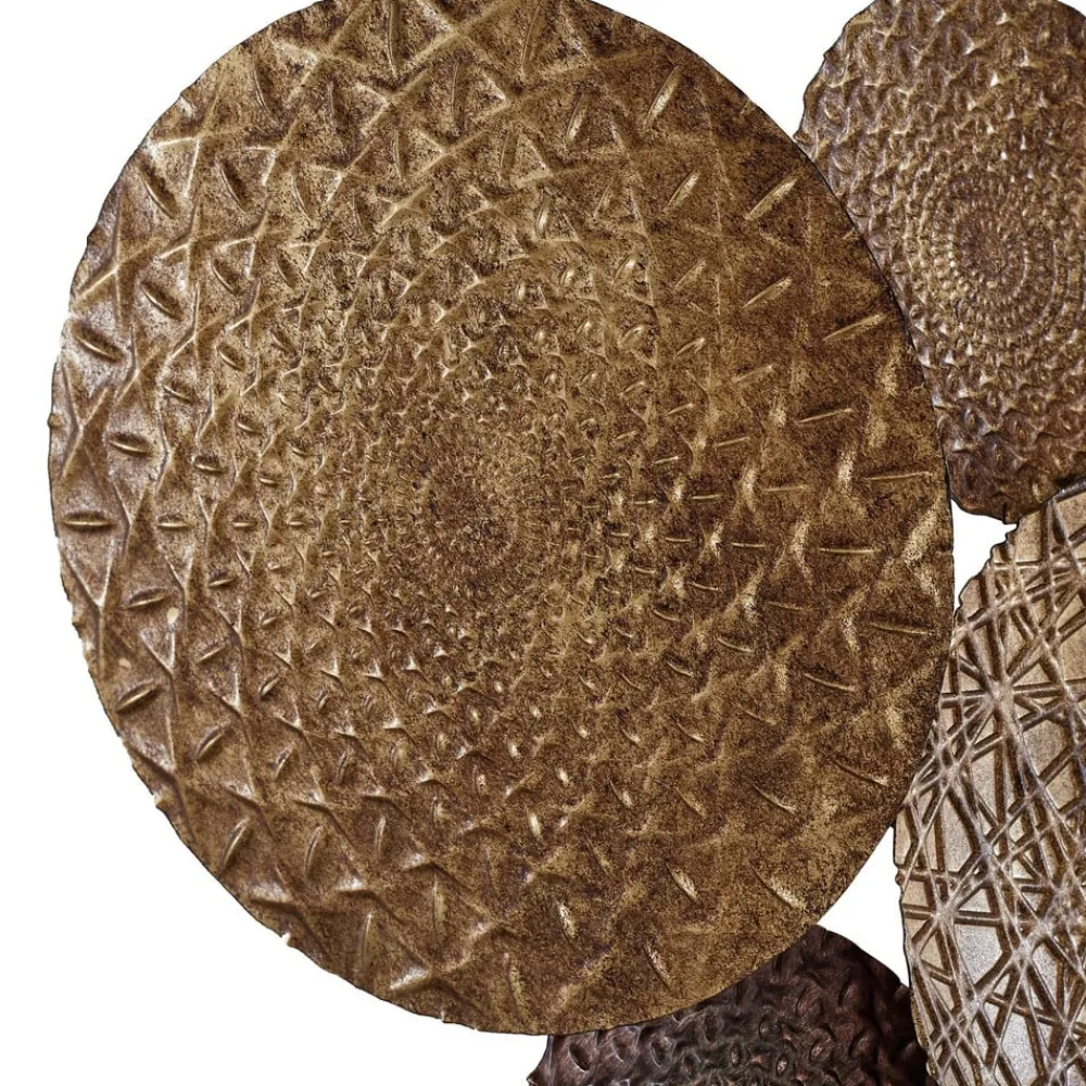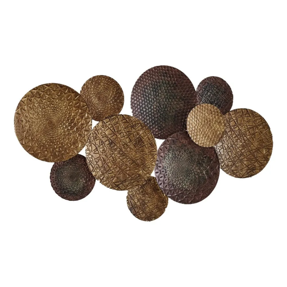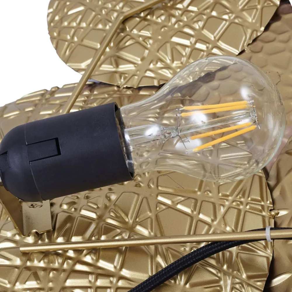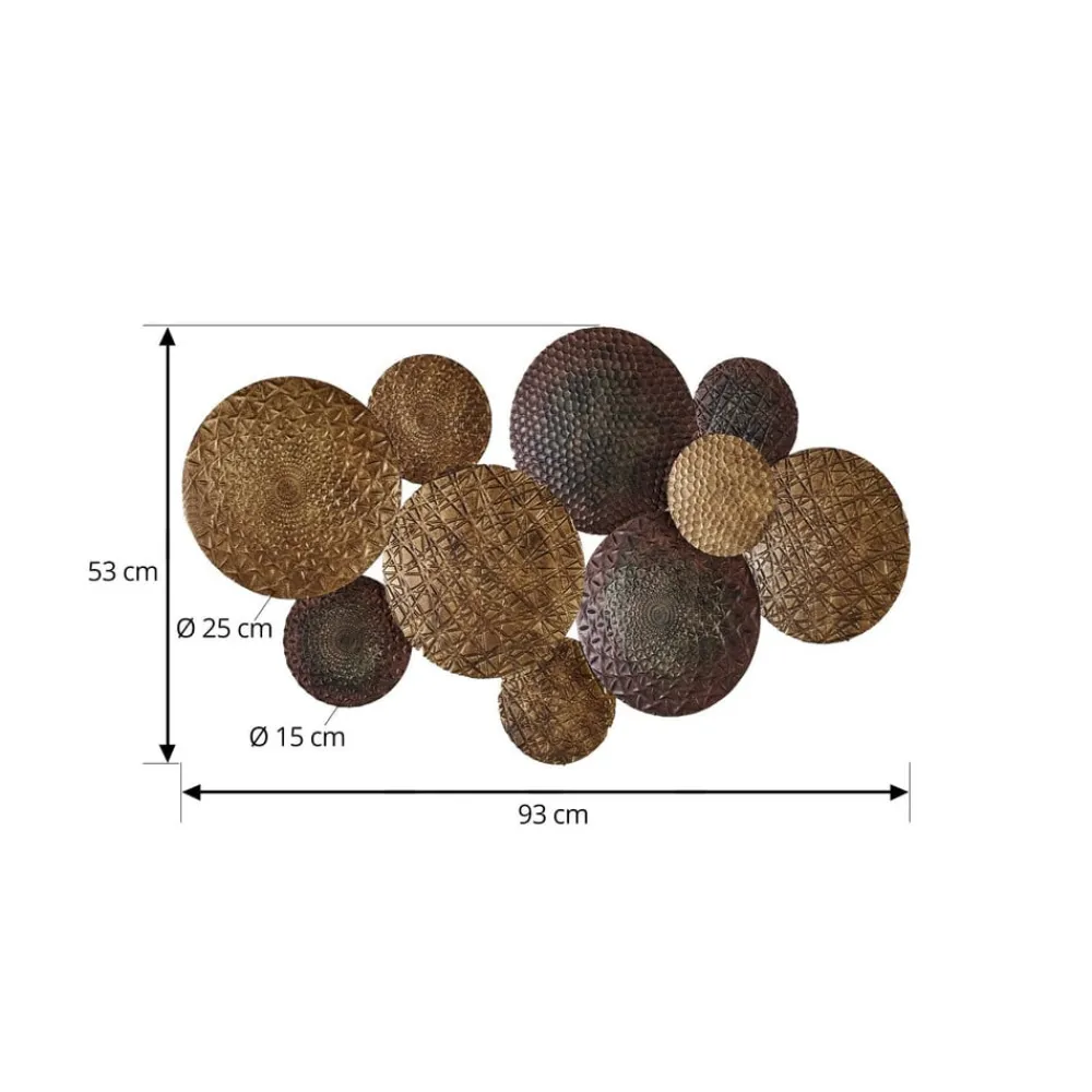 Orientalsk inspirert Soraya vegglampe med runde skjermer Denne vegglampen er designet i orientalsk stil og er laget av robust jern. De gull- og kobberfargede elementene gir den et elegant preg. De er runde i formen, varierer i størrelse og er dekorert med ulike mønstre, noe som gjør dem til et unikt blikkfang i ethvert rom. Soraya vegglampe er ikke bare et dekorativt element, men også en lyskilde som skaper en hyggelig atmosfære. Dette oppnås ved hjelp av de to skjulte pærene som sitter bak de runde elementene, og som skaper indirekte lys hele veien rundt.