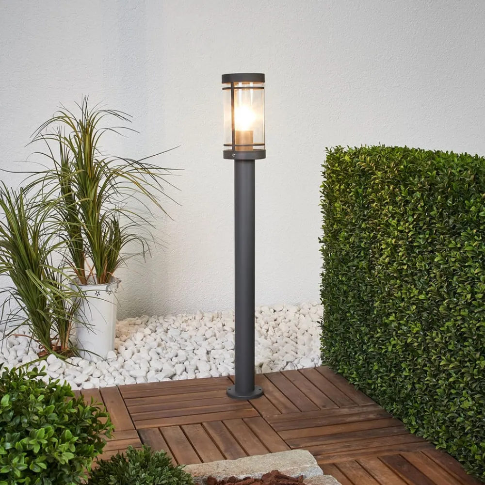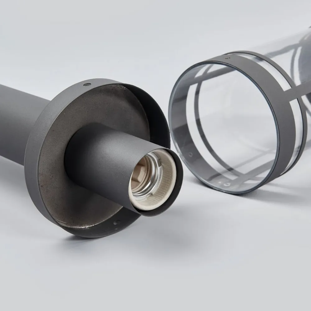 Djori leveres med en lampe for fatning E27, og fordi polykarbonatinnsatsen er klar, anbefales det å bruke en pære med tiltalende utseende, f.eks. en filamentpære som ser ut som en tradisjonell glødepære. Stativet i rustfritt stål har en mørkegrå finish, og den sylinderformede lampeskjermen kompletterer det totale designet på en utmerket måte. Derfor er Djori en veilampe som gir førsteklasses belysning av innkjørsler og hagestier, slik at man føler seg trygg og finner veien selv etter mørkets frembrudd.