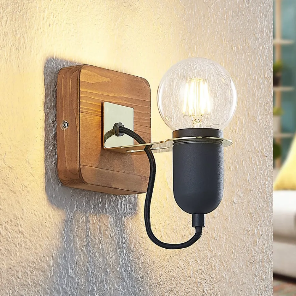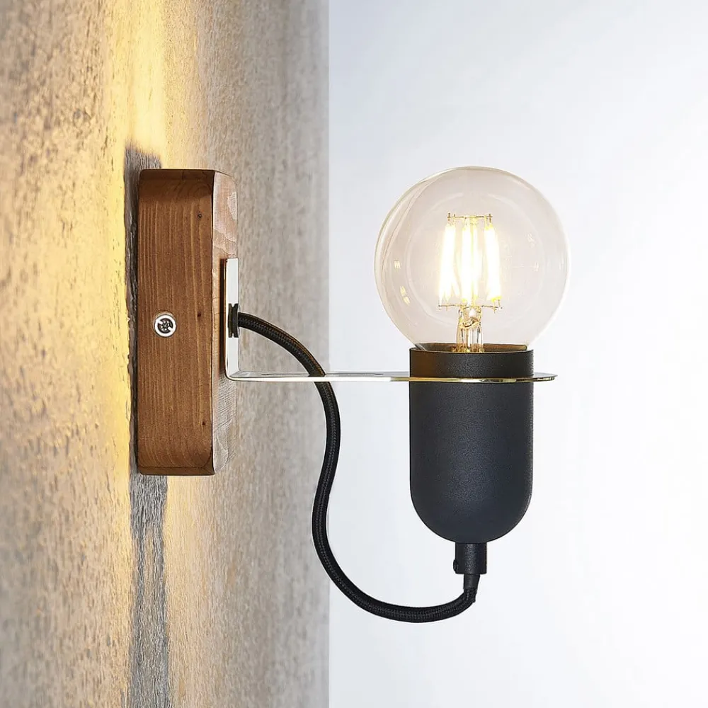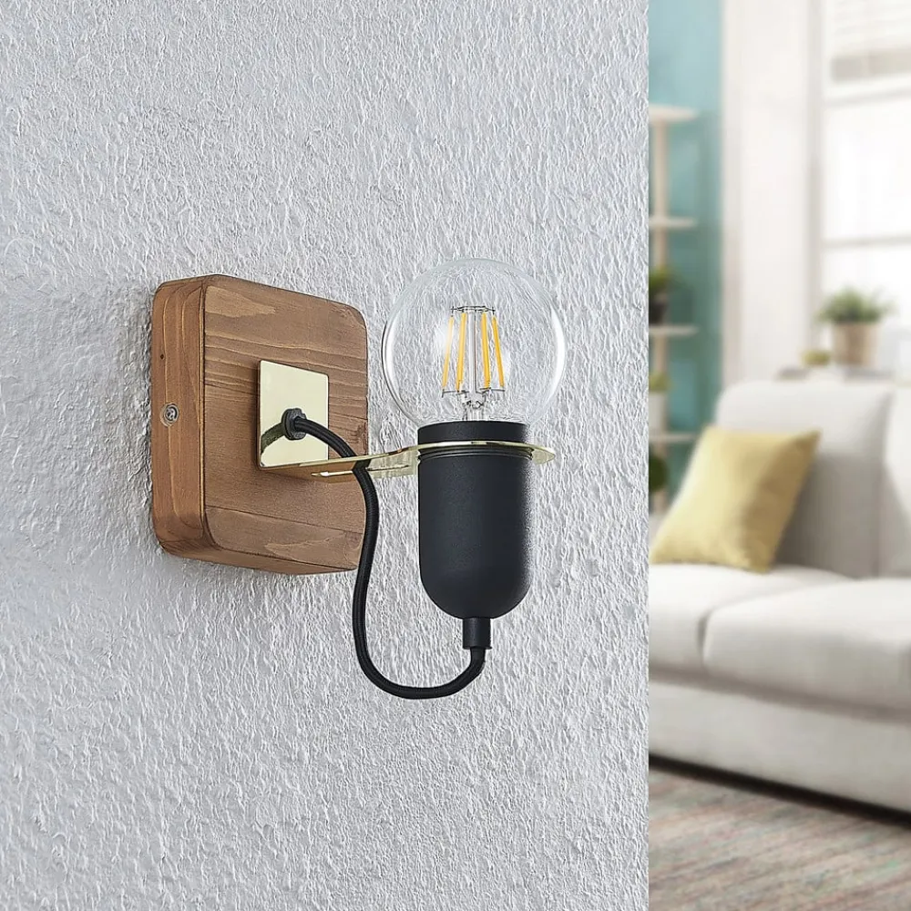 Lucande Becky veggspot i tre, 1 lyskilde, svart| Vegglamper