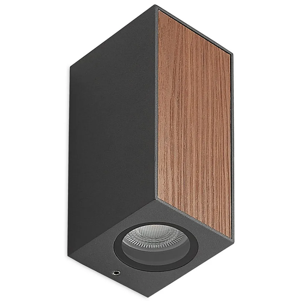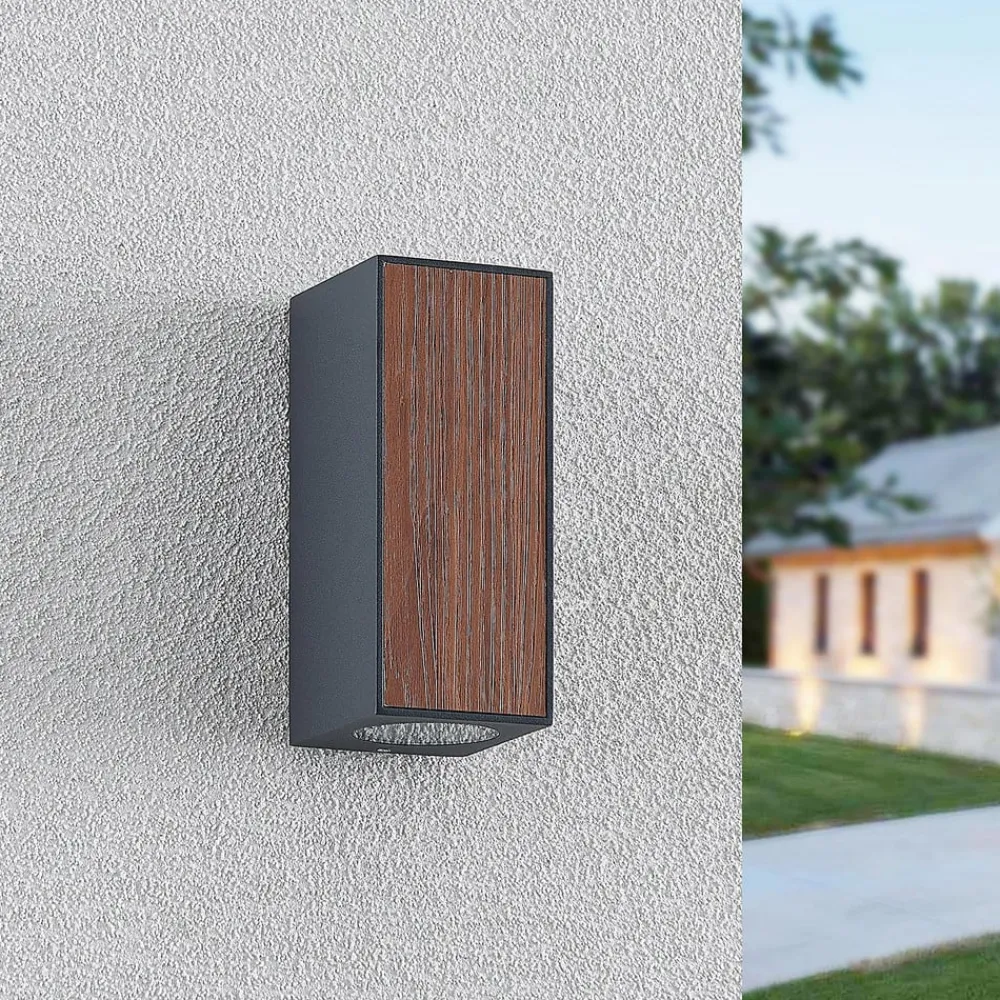 Utendørs vegglampe Cimala i lang form med tredekor og GU10 stikkontakter