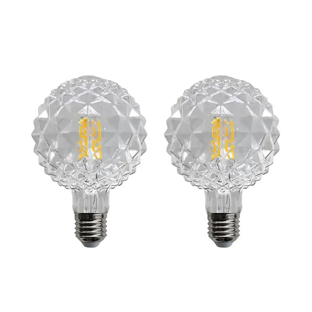 E27 3,8W LED-pære G95 2 700 K struktur klart 2 stk
