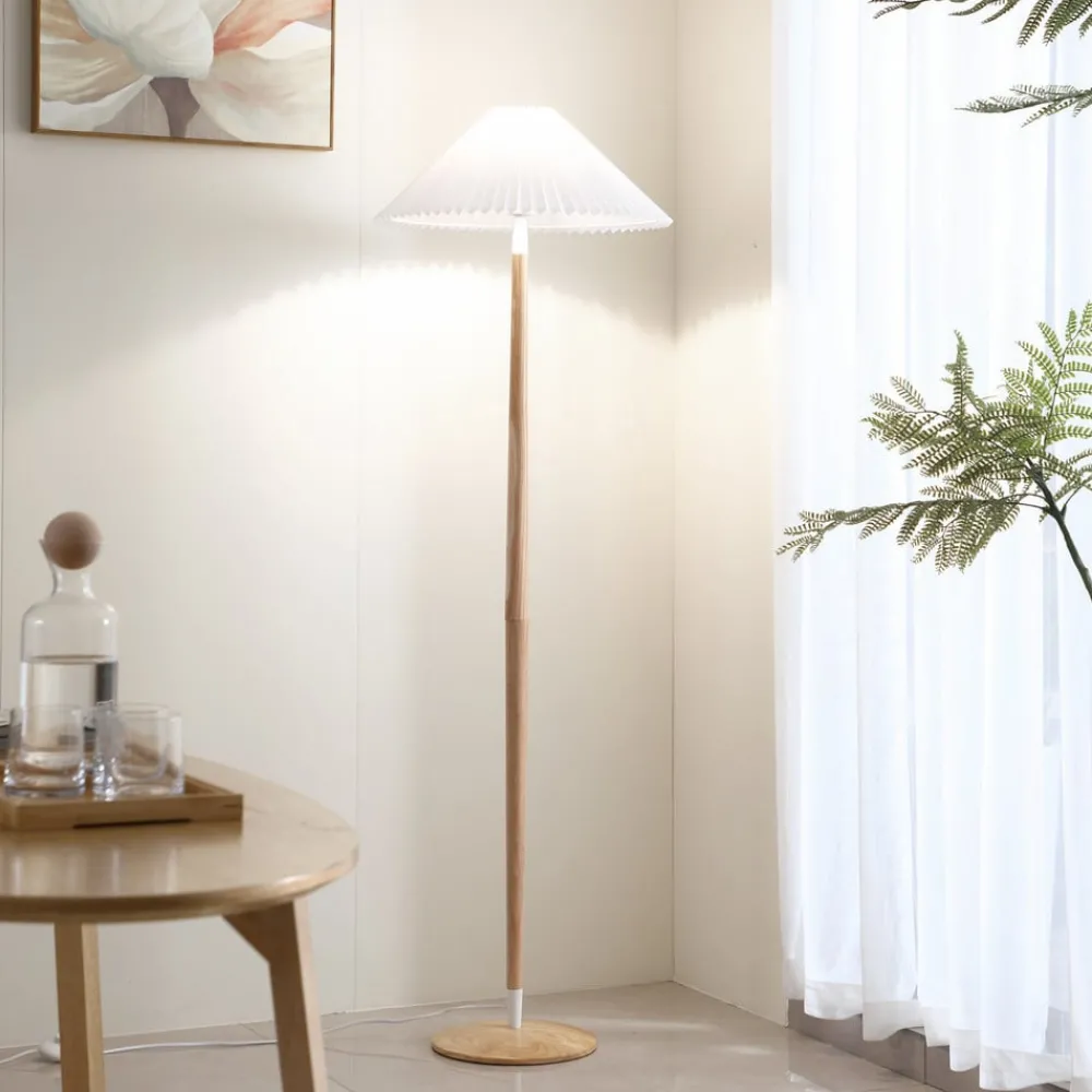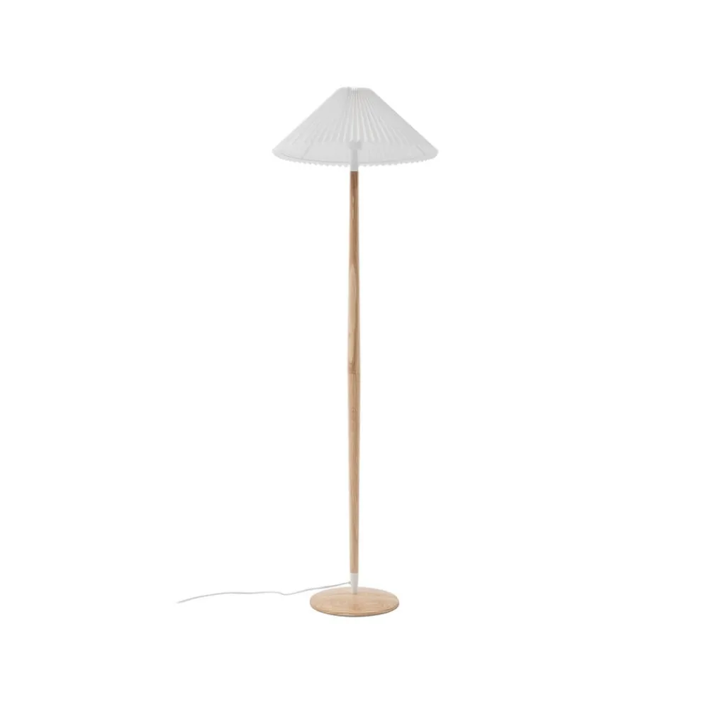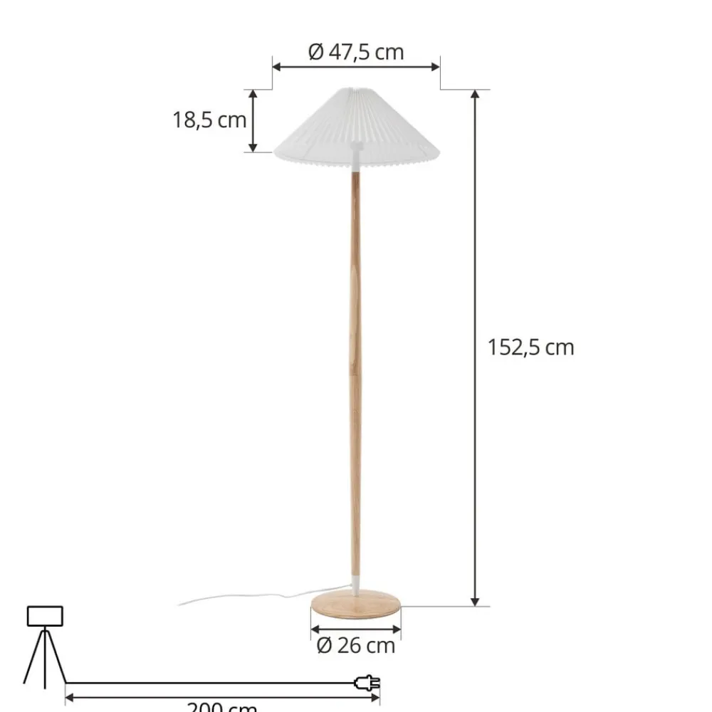 Ellorin gulvlampe i tre og tekstil med fotbryter Denne gulvlampen skaper en koselig atmosfære og inviterer deg og familien til å drømme. Lampen har et flott design og smelter vakkert inn i rommet ditt. La deg inspirere av Lucande-merkets førsteklasses kvalitet og gjennomtenkte design. Lampen er enkel å betjene ved hjelp av en fotbryter. Den vakre gulvlampen har et flott design og gir rommene dine en koselig stil. Lampen er designet for å passe til lyskilder med E27-sokkel. Den har fargen tre. Denne gulvlampen, som det er lett å finne den rette plassen til, vil berike interiøret ditt. Lampen imponerer både visuelt og med sine lysegenskaper.