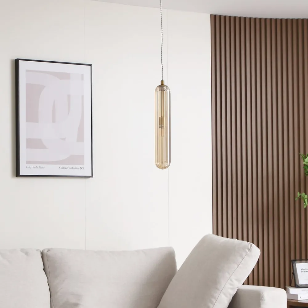 Lucande Freylin pendellampe, 1-lys, rav, glass, 6 cm| Pendellamper