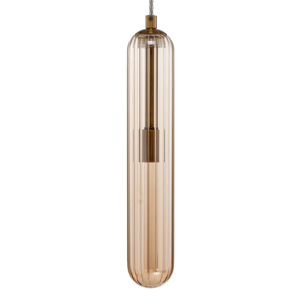 Freylin – et nostalgisk innslag innendørs med lampeskjerm i glass Denne lampen vil få hjemmet ditt til å skinne i ny prakt. Armaturen imponerer med sin merkevarekvalitet fra Lucande, med en fantastisk koselig følelse og tiltalende design. Du kan justere lysstyrken etter eget ønske ved hjelp av en ekstern dimmer (ikke inkludert). Freylin fullfører belysningskonseptet i hjemmet ditt på en effektiv måte med sitt flotte utseende. Lampen i fargene amber og messing kan utstyres med pærer med G9-sokkel. Den skaper et vakkert utseende og gir rommet ditt en stemningsfull atmosfære. Det vellykkede lyset fra pendellampen er ideelt for å sette scenen i ethvert rom. La oppholdsrommet ditt skinne i ny prakt takket være denne lampen.