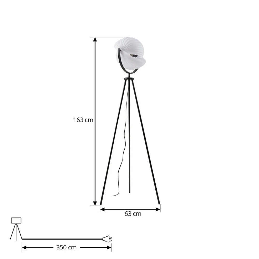 - Bredde stativ 63 cm; lengde kabel 350 cm