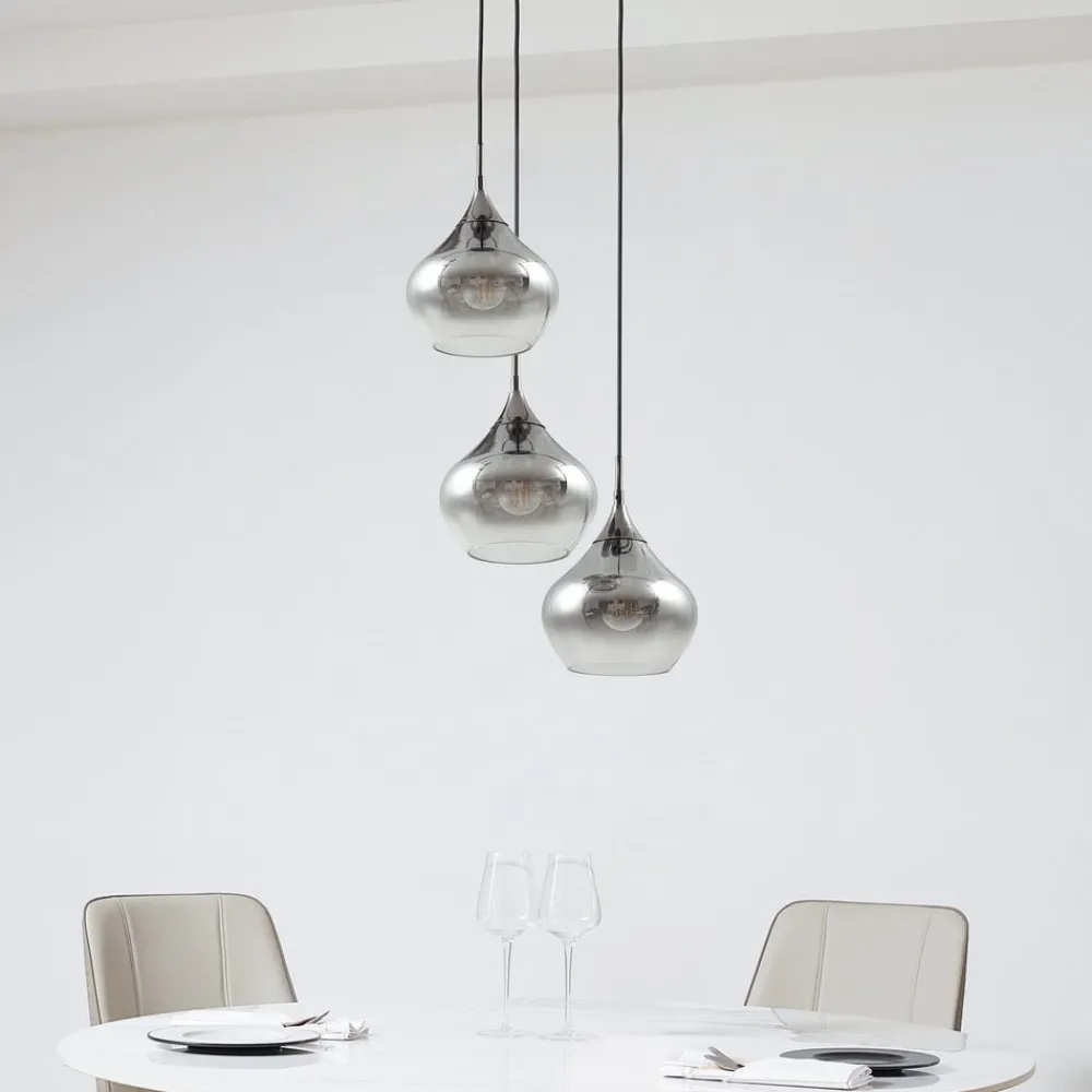Lyskunst til stuen: Jarven pendellampe i svart med tre lampeskjermer Eleganse møter funksjonalitet – Jarven pendellampe i elegant svart med aksenter i glass er et mesterverk i moderne stil. Denne 3 lyskilder-armaturen er spesielt designet for bruk i spisestuer og stuer for å gi ikke bare lys, men også en atmosfære av raffinement og komfort. Selv om det ikke følger med en dimmer med denne modellen, kan lysintensiteten justeres ved hjelp av en ekstern dimmer for å skape den ønskede atmosfæren for enhver anledning (vær oppmerksom på at den eksterne dimmeren må kjøpes separat).