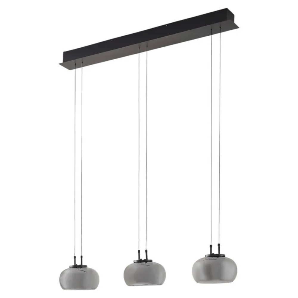 Lucande LED-hengelampe Dain, 3 lyskilder, røykgrå, glass| Led-Innendørs
