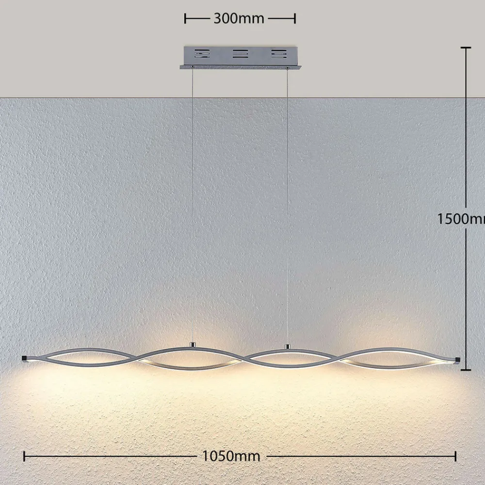 Bølget LED-hengelampe i bjelkeform Roan med høy lysstyrke. Ideell for spisestuen
