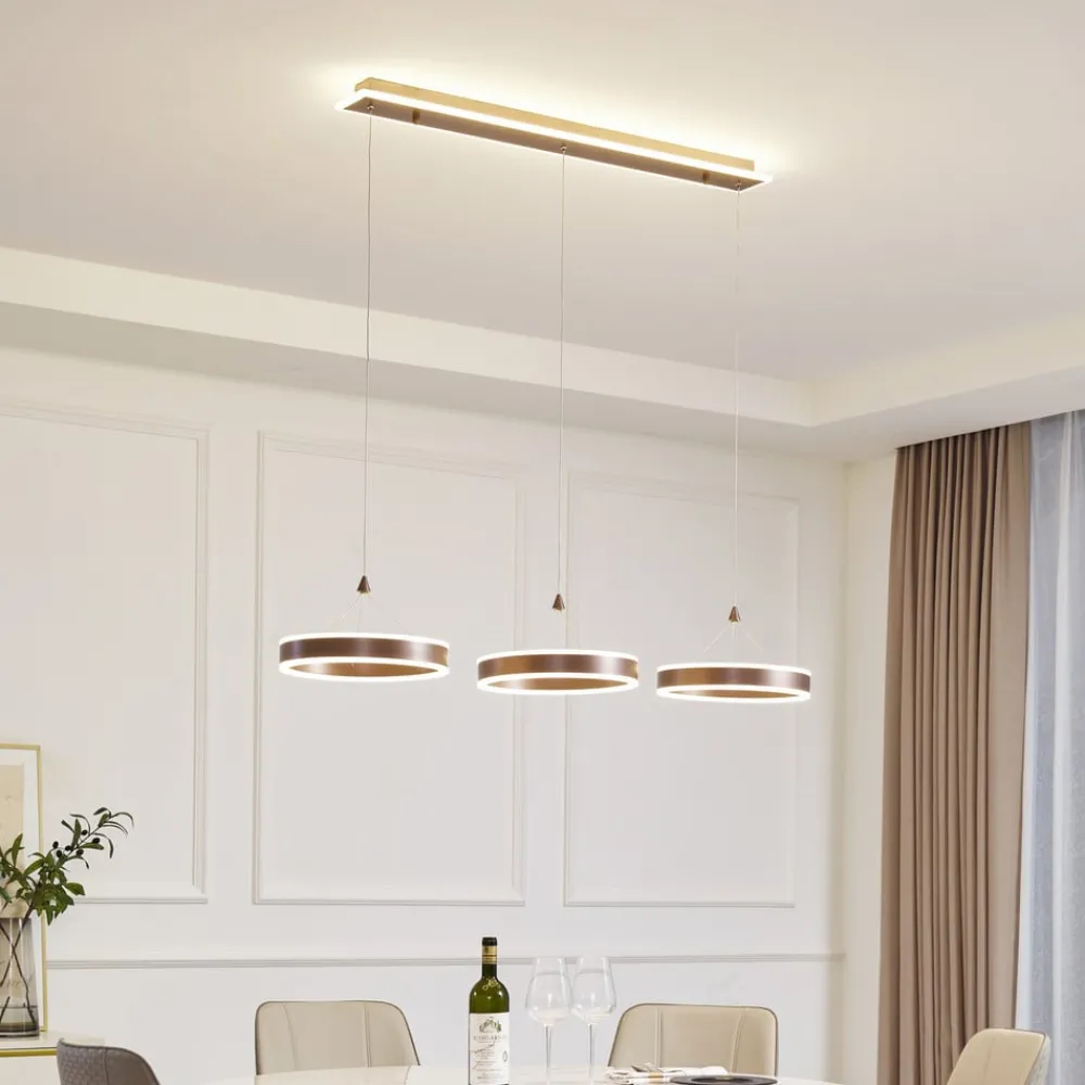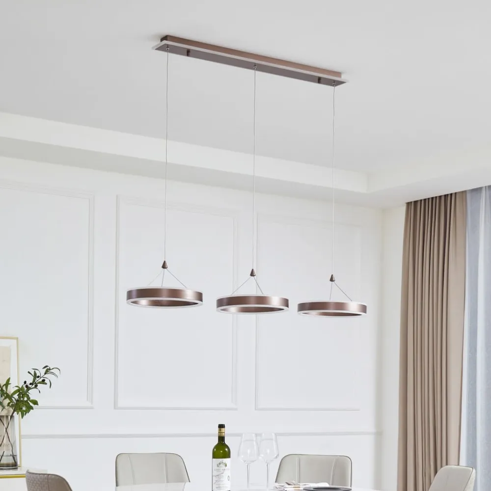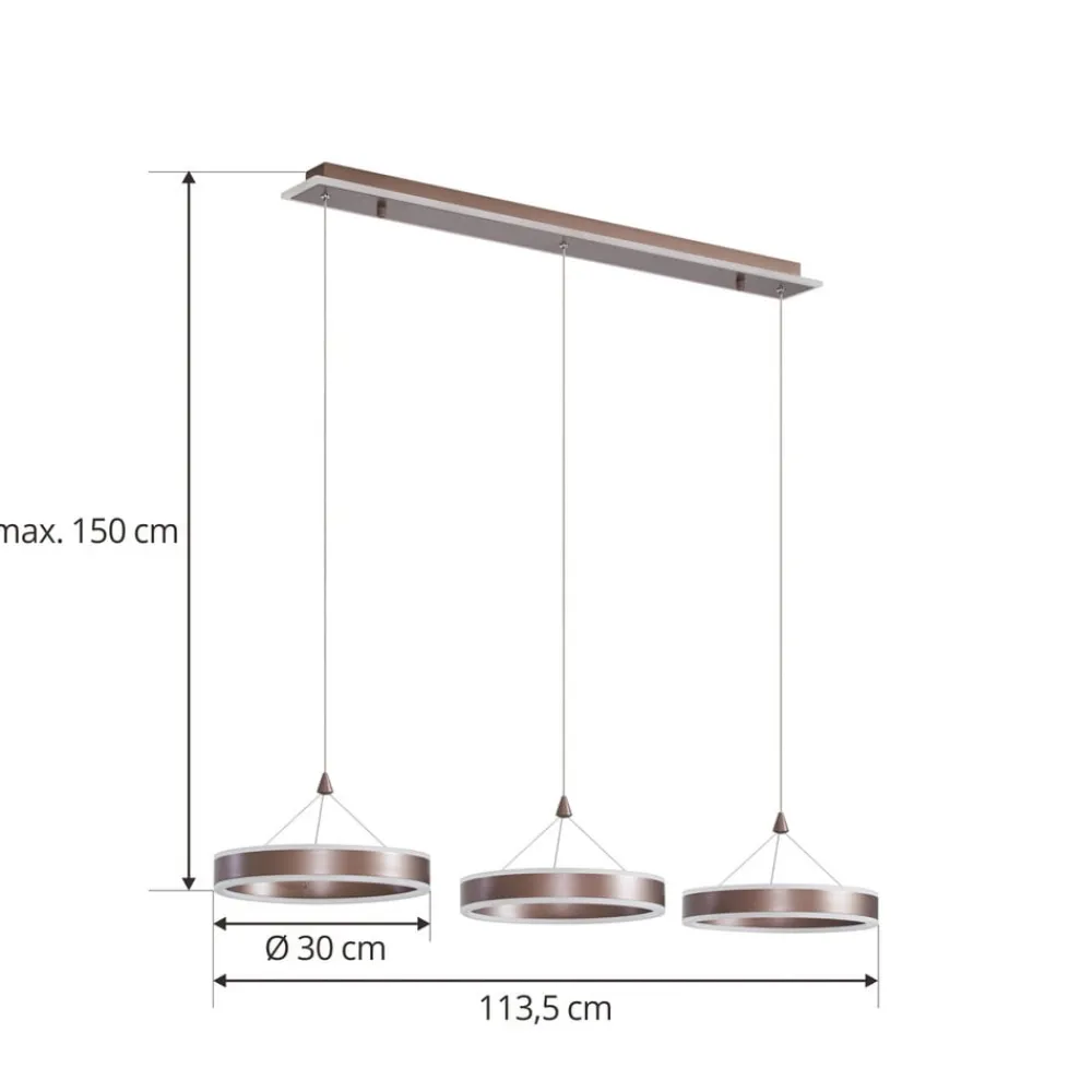 Dimbare LED-hengelampe Kolo i kaffebrun med tre ringformede skjerm