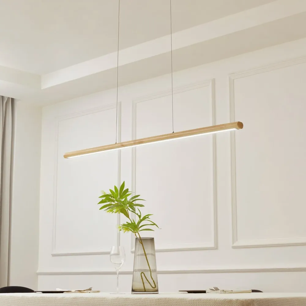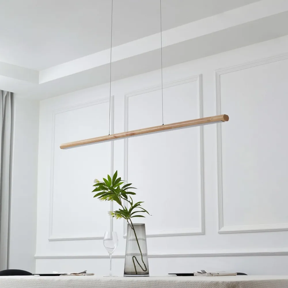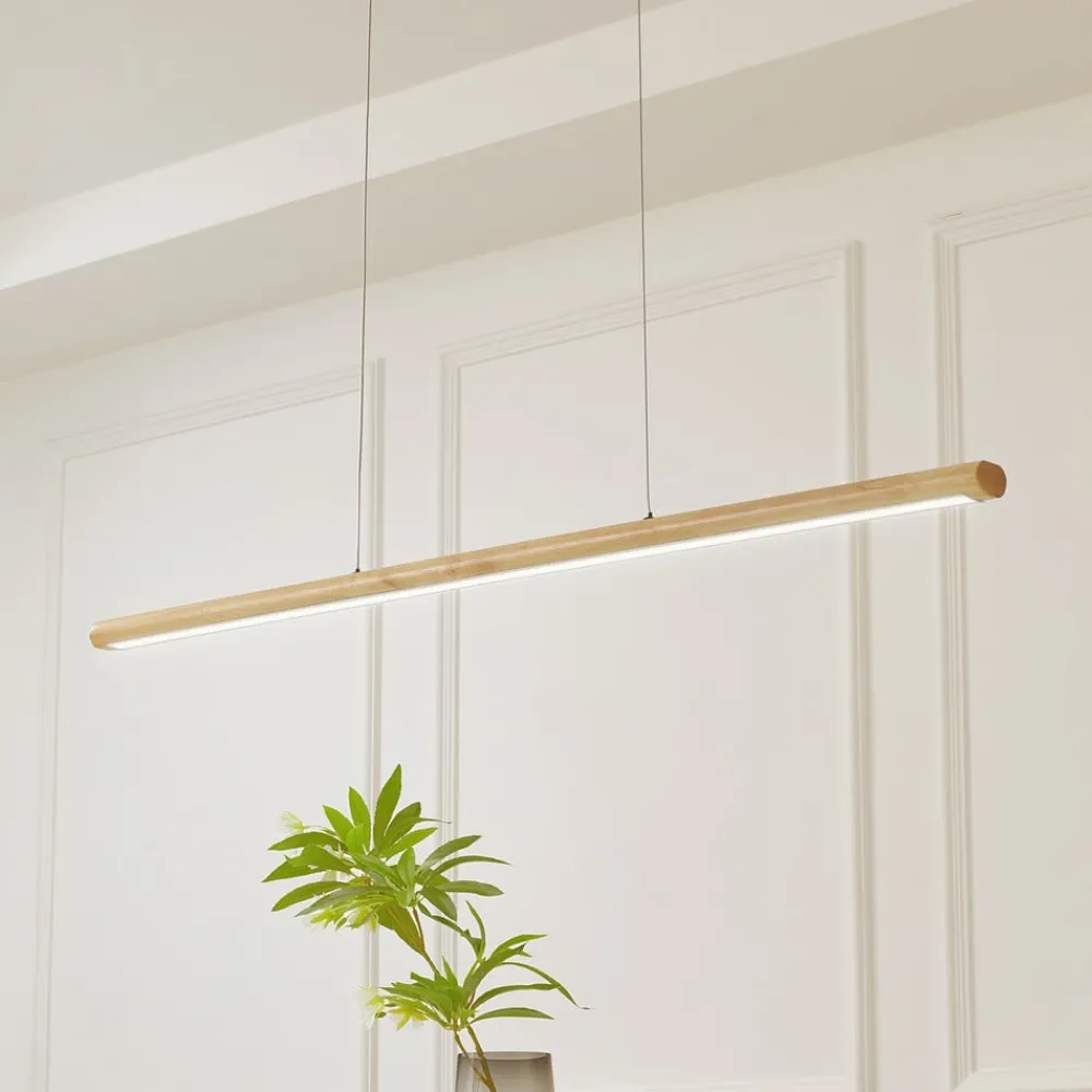 Lucande LED-hengelampe Maruta, tre, bjelkeform, 120 cm, 3000K| Pendellamper