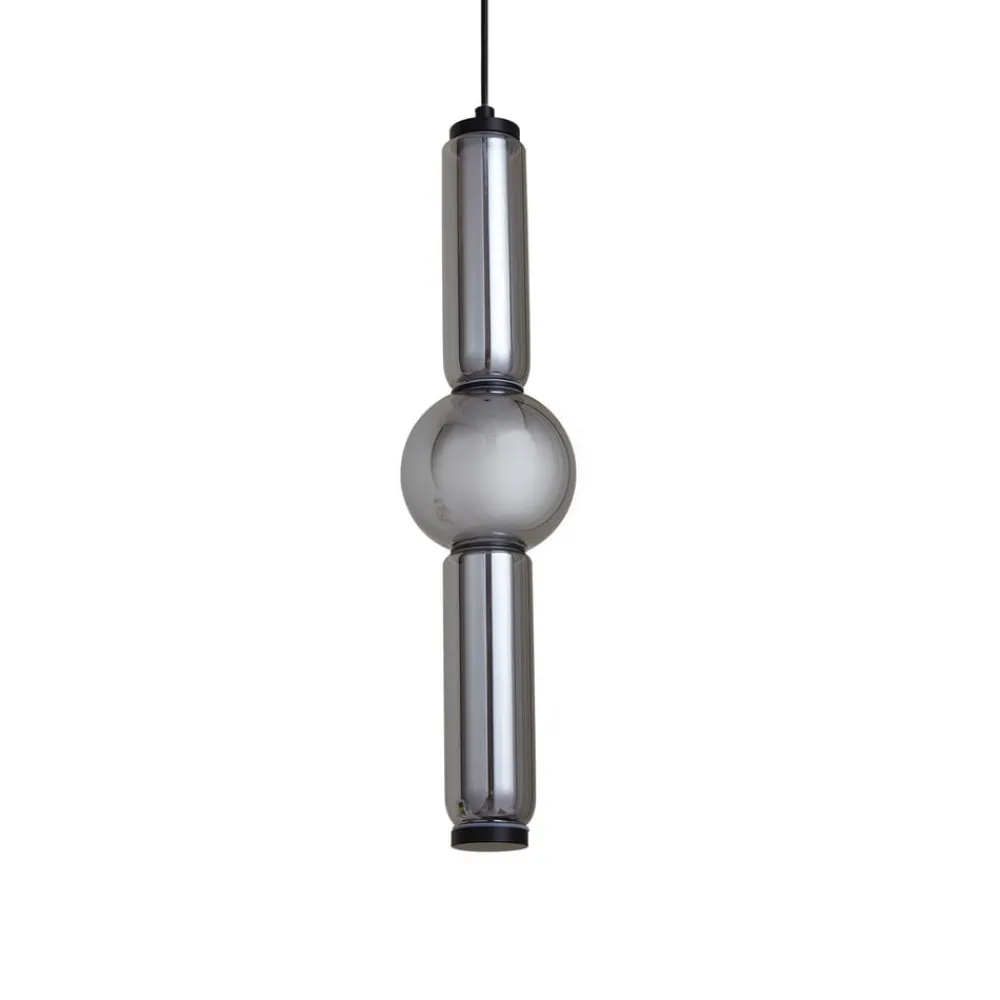 Lucande LED-hengelampe Savete, røykgrå, glass, Ø 12 cm| Led-Innendørs