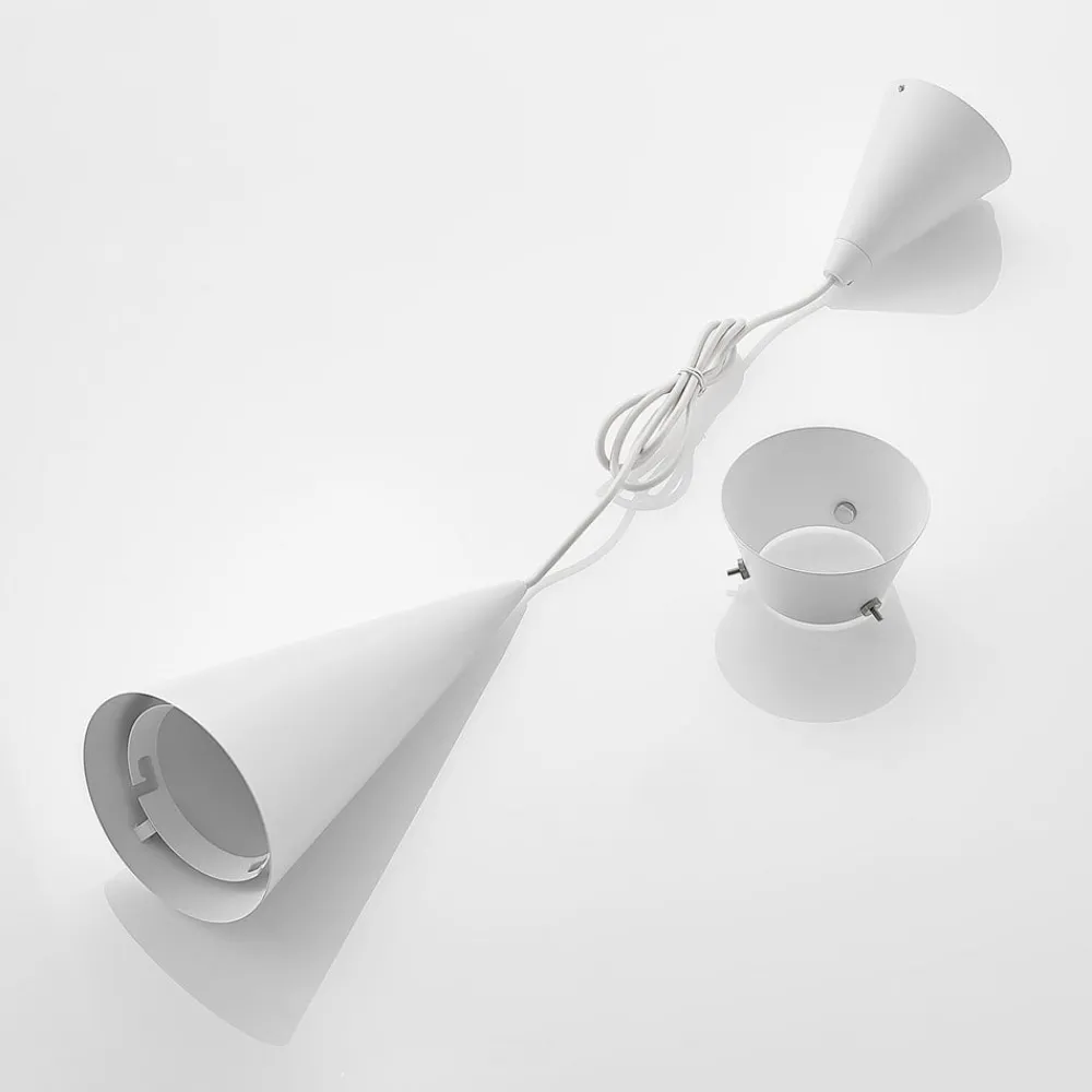 Naoh har et upåvirket fargevalg i hvitt, som er naturlig og subtilt. En overbevis moderne design i to-lags formen preger utformingen språket, hvorved metall lampeskjerm ligner en kjegle og avgir lyset hovedsaklig nedad. Dette gjør pendellampe veldig godt egnet som bord- eller motbelysning og kan også festes på rad med flere lys. takfeste er også kjegleformet og speiler dermed til en viss grad lampeskjerm, om enn i en litt mindre dimensjon. To-lags design individualiserer designet og glødelamper er passende lamper som også passer bra til Naoh.