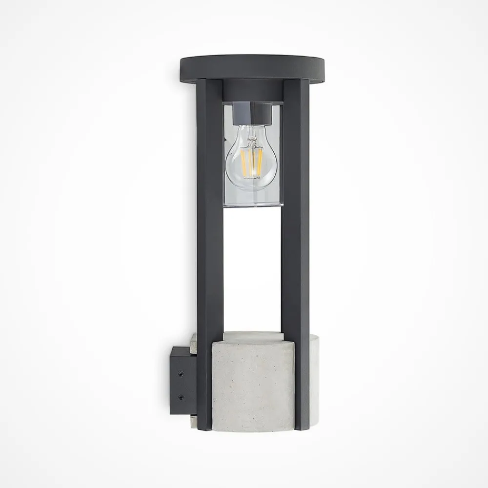 Innvendig er det et gjennomsiktig skjermdeksel som beskytter E27-brenneren. En sementbase er installert i det nedre området, som avrunder lampens spesielle utseende.