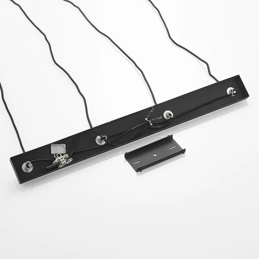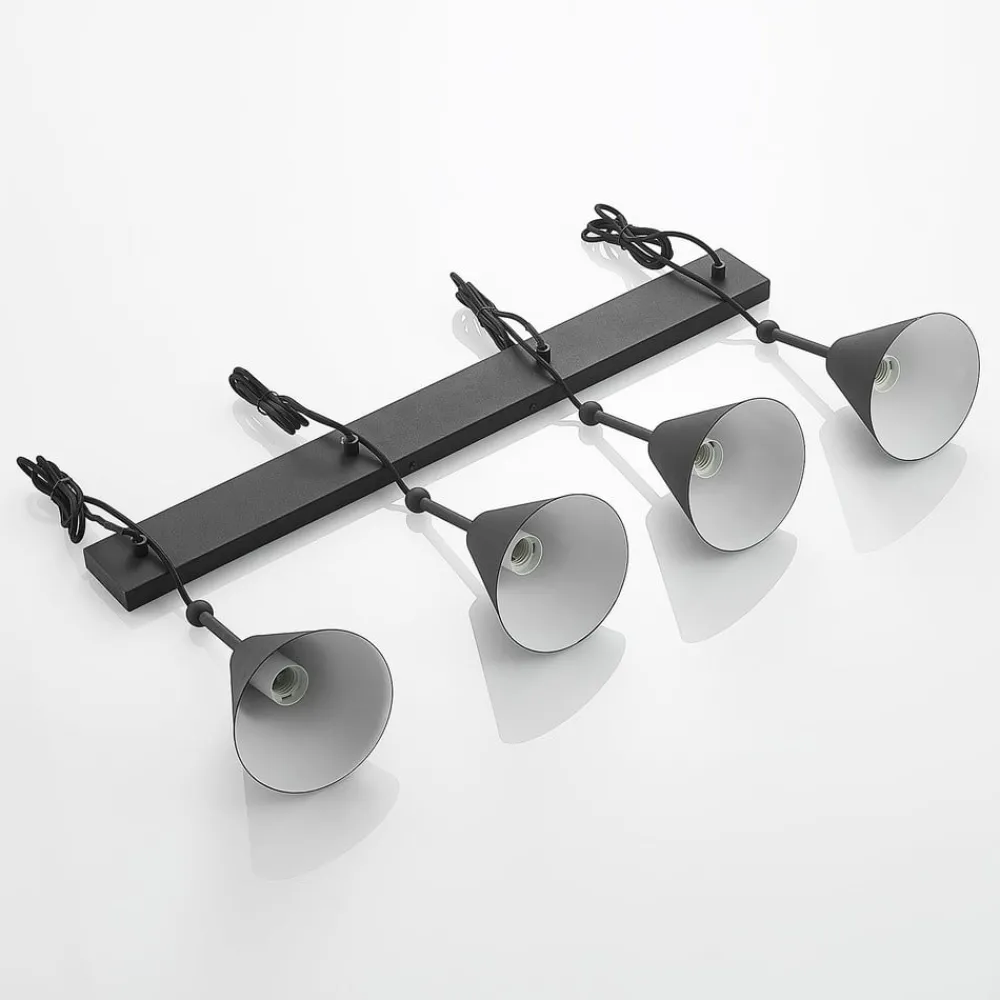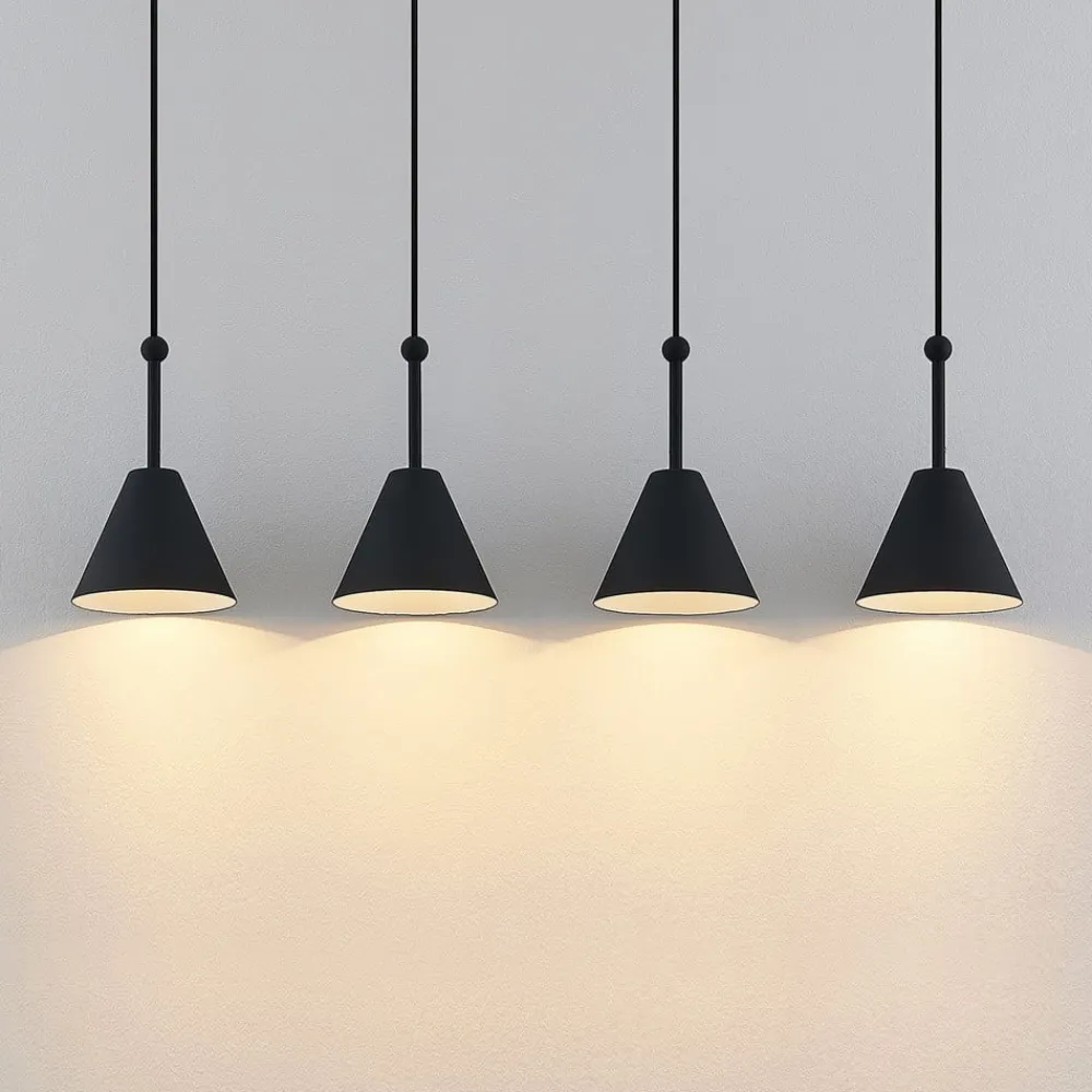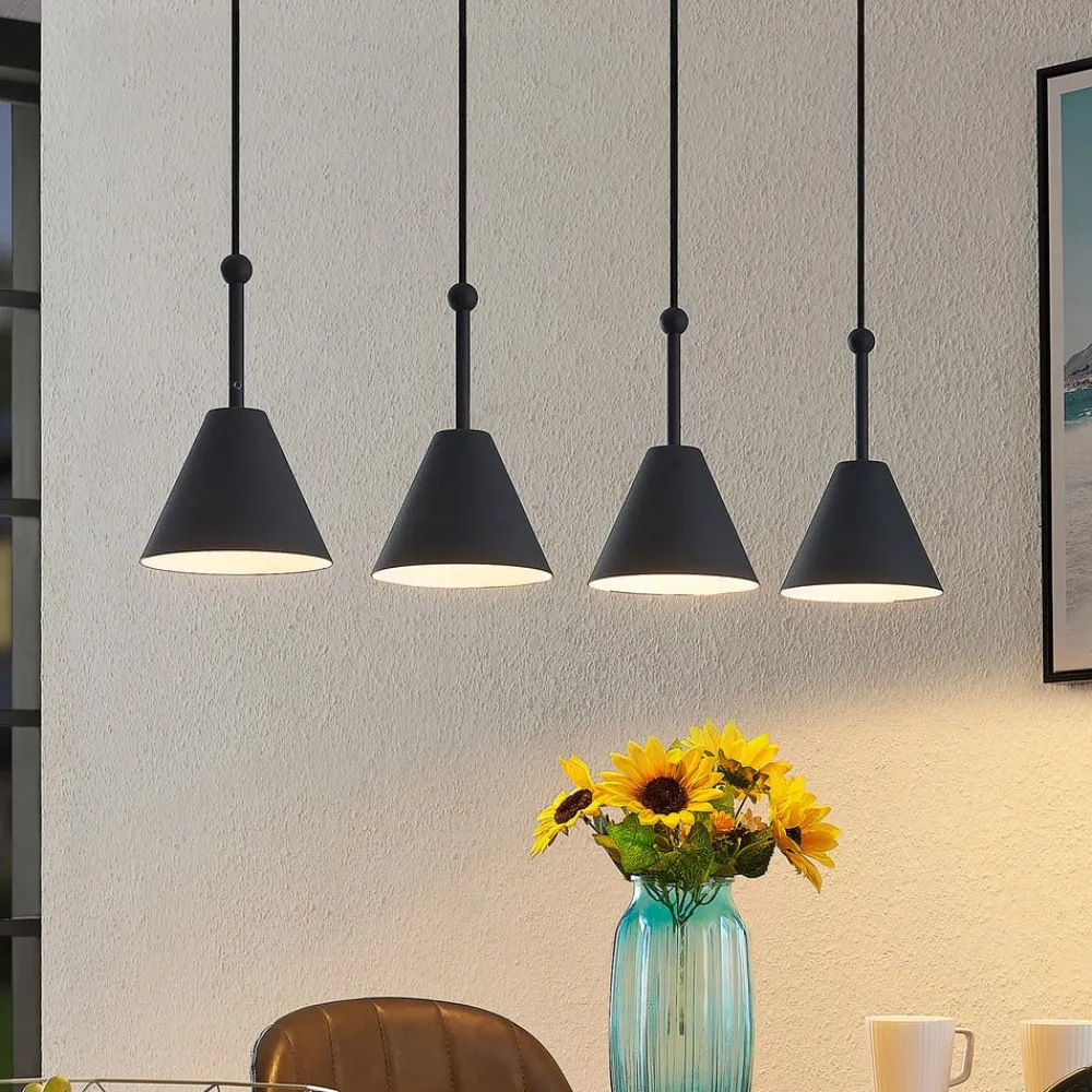 Phina-pendellampen er ideell for å belyse en stue eller spisestue. Den er laget av jern og er svart, mens det indre av lampeskjermene er hvite. Den langstrakte formen består av en langstrakt takfeste som det er festet til fire suspensjoner, hver med en lampeskjerm . Hvis du utstyrer disse med E27-lamper, skaper veggene blenderfri belysning og en harmonisk atmosfære. Med sin fasjonable design kan Phina pendellampe enkelt integreres i et bredt utvalg av innredningsstiler og setter elegante detaljer i interiøret.