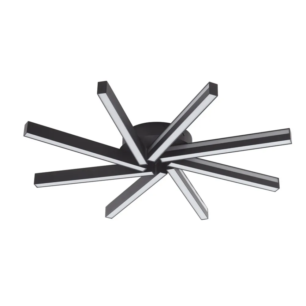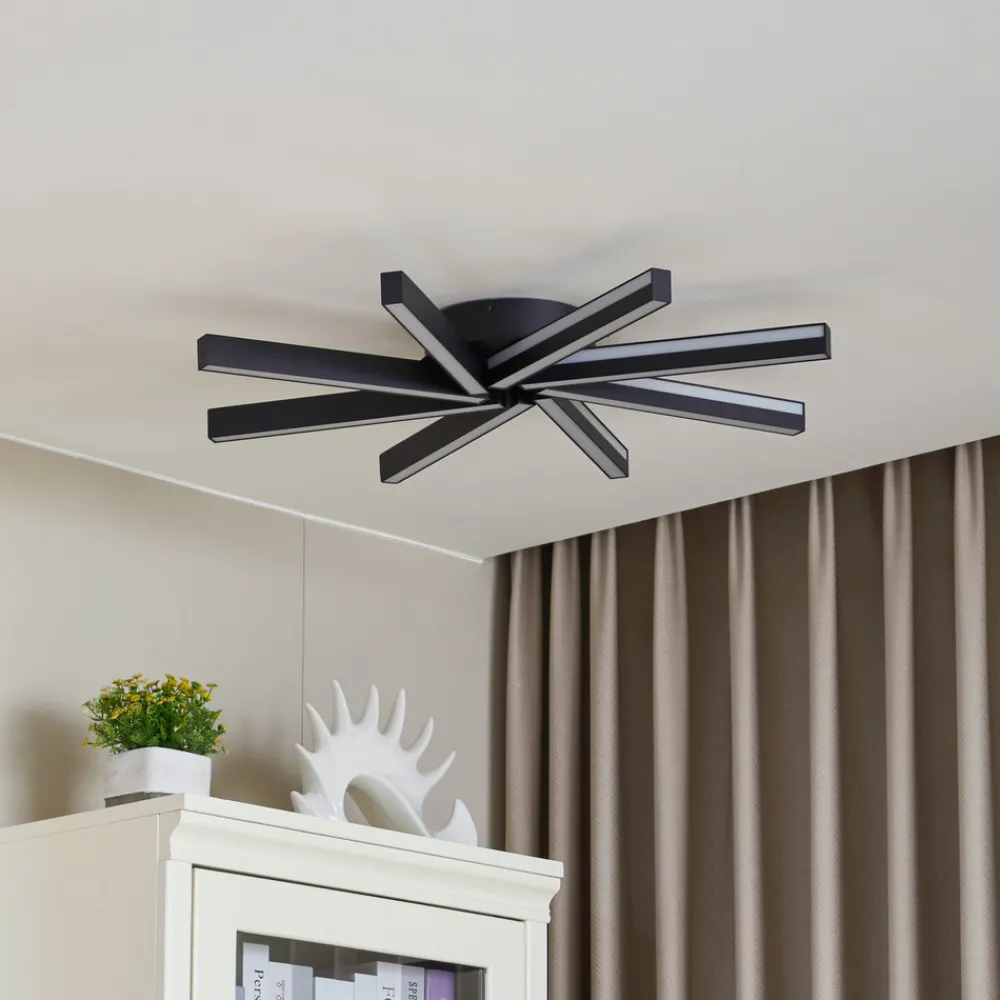 Tjado LED-taklampe med åtte LED-lyslister – kan styres med fjernkontroll og Tuya Denne taklampen gjør en god figur i ethvert hjem. Lampen kan enkelt slås av og på ved hjelp av en fjernkontroll. Den har en fargeskiftefunksjon som gjør at du kan tilpasse lysfargen til dine individuelle behov. Taklampen lar deg justere lysstyrken etter dine behov ved hjelp av en fjernkontroll. Med sin stilige design er den et behagelig tilskudd til belysningskonseptet i ethvert rom. Den svarte taklampen imponerer med kvaliteten til Lucande-merket og står derfor for smakfull design og en unik boopplevelse. Den vil sette et flott preg på ethvert oppholdsrom, uansett hvor den installeres. Taklampens stilige design gir hvert rom en vakker stil som enkelt kan matches med dine eksisterende dekorative elementer. Enten den er slått på eller av: denne lampen vil imponere – kan også styres via den gratis Tuya-appen (tilgjengelig for iOS og Android)